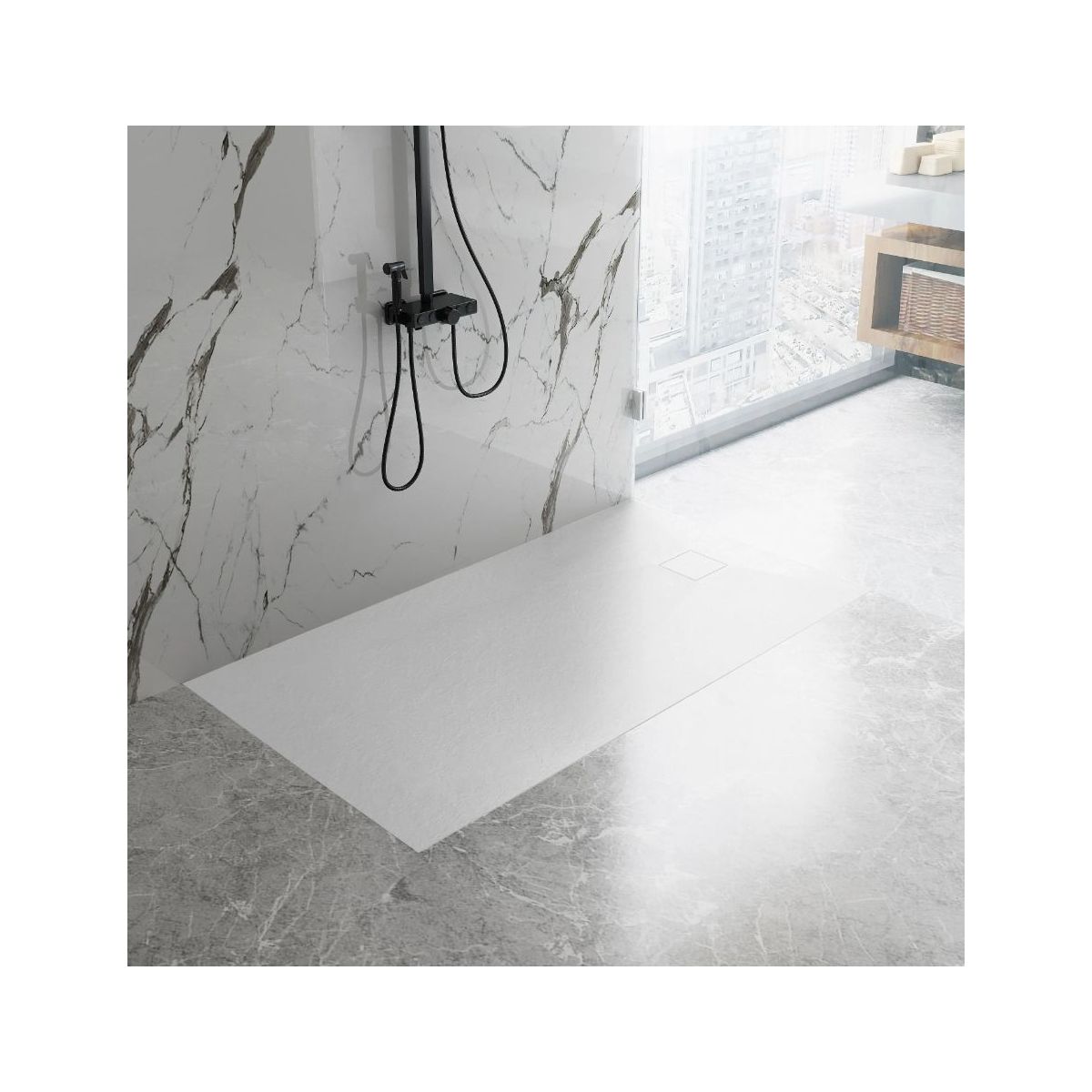 Die Duschwanne kann auf den Boden gestellt, in den Boden eingelassen und nach Belieben zugeschnitten werden, wodurch sie universell einsetzbar ist und sich in jedes Interieur einfügt. Er wird aus SMC-Verbundmaterial hergestellt, das sich durch eine außergewöhnliche Beständigkeit gegen Feuchtigkeit, mechanische Beschädigungen und Reinigungsmittel auszeichnet, was sich in einer außergewöhnlichen Haltbarkeit, Leichtigkeit und Eleganz des Produkts niederschlägt.