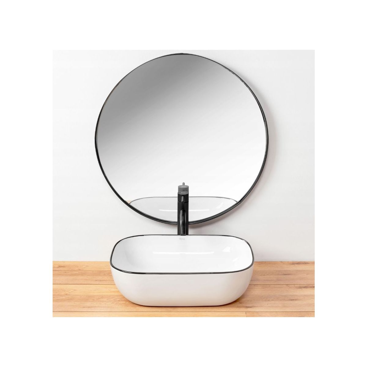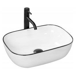 Rea Marbel Waschbecken 46.5x33 cm rechteckig Aufsatzwaschbecken weiß-schwarz REA-U8603