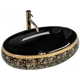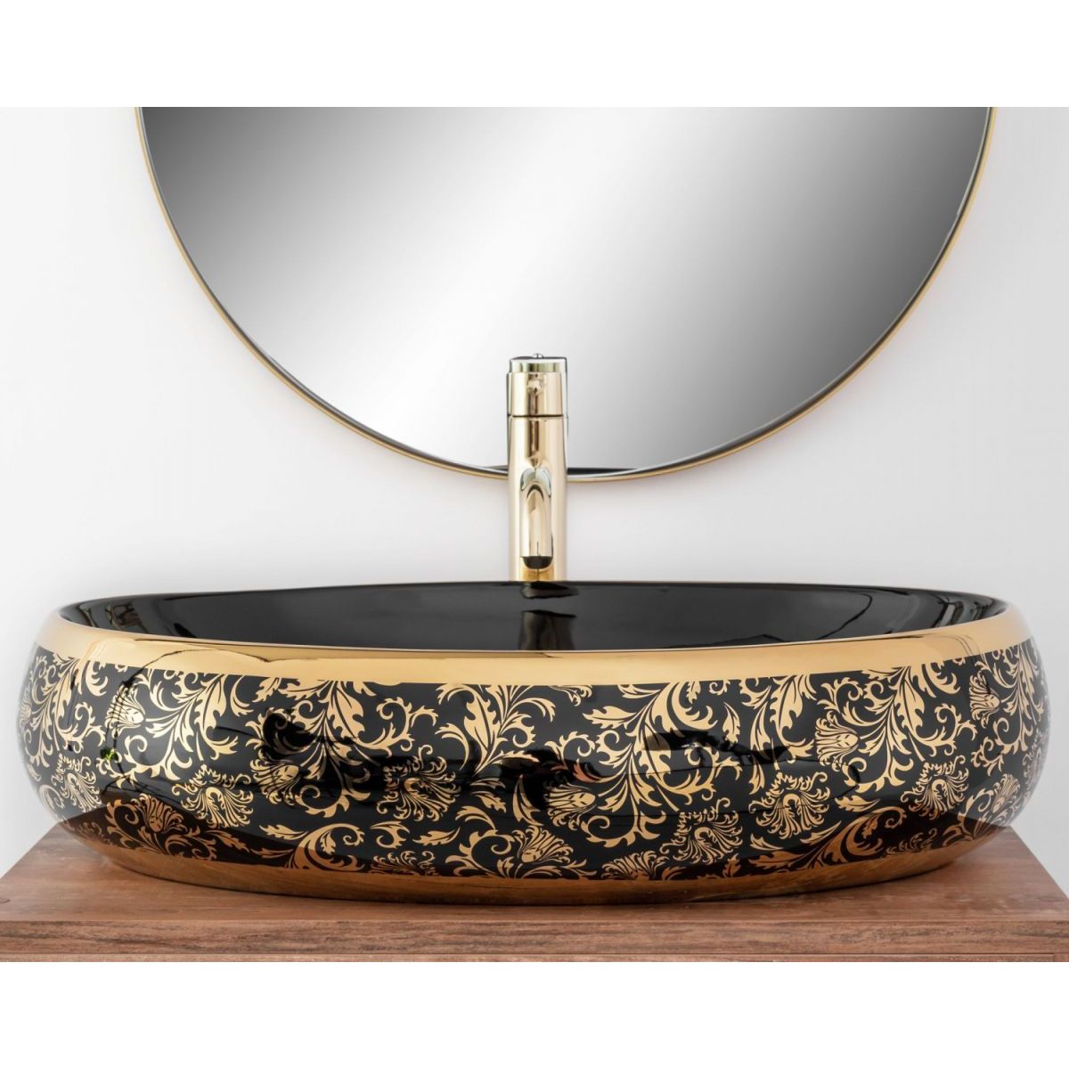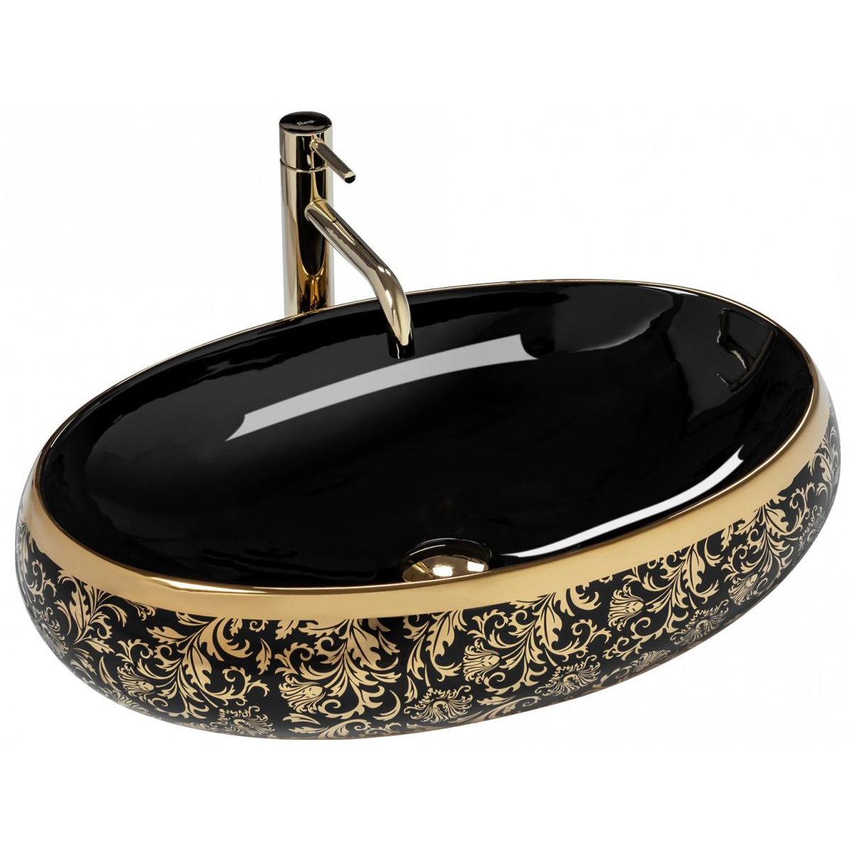 Rea Meryl Waschbecken 60x40.5 cm oval Aufsatzwaschbecken schwarz-gold REA-U8811