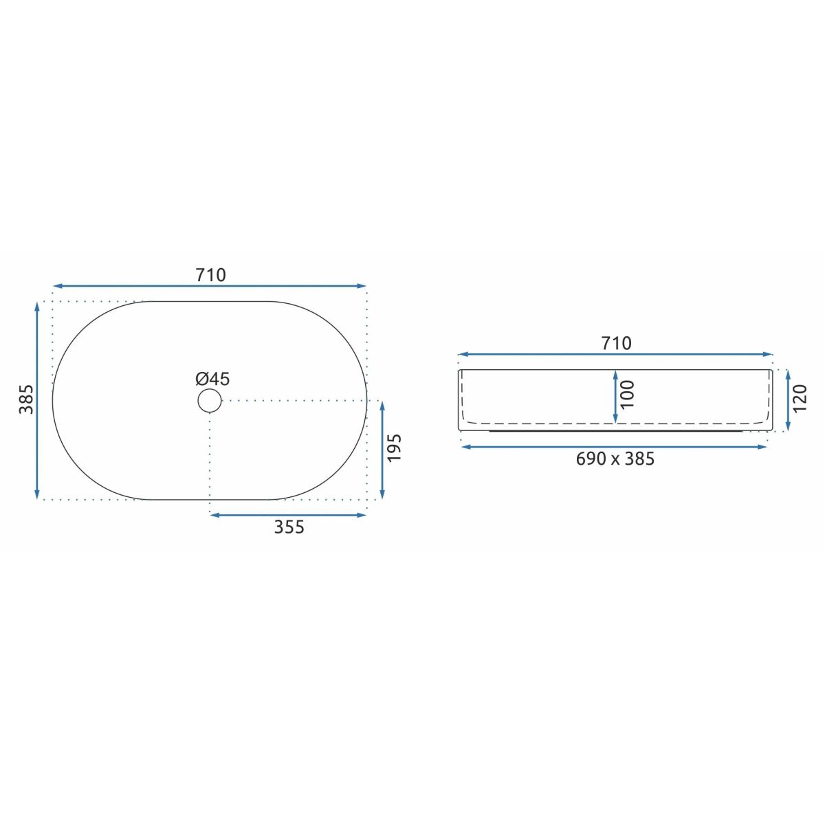 Rea Nadia Waschbecken 71x38.5 cm oval Aufsatzwaschbecken weiß REA-U5801
