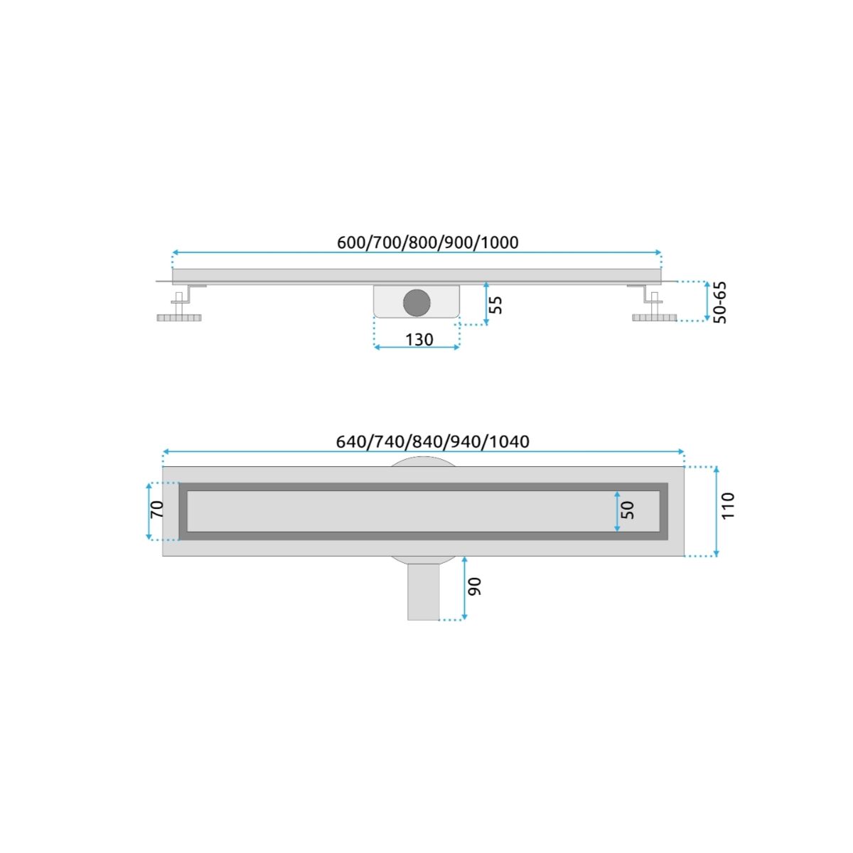 - Material der Ablaufrinne: Edelstahl AISI 304