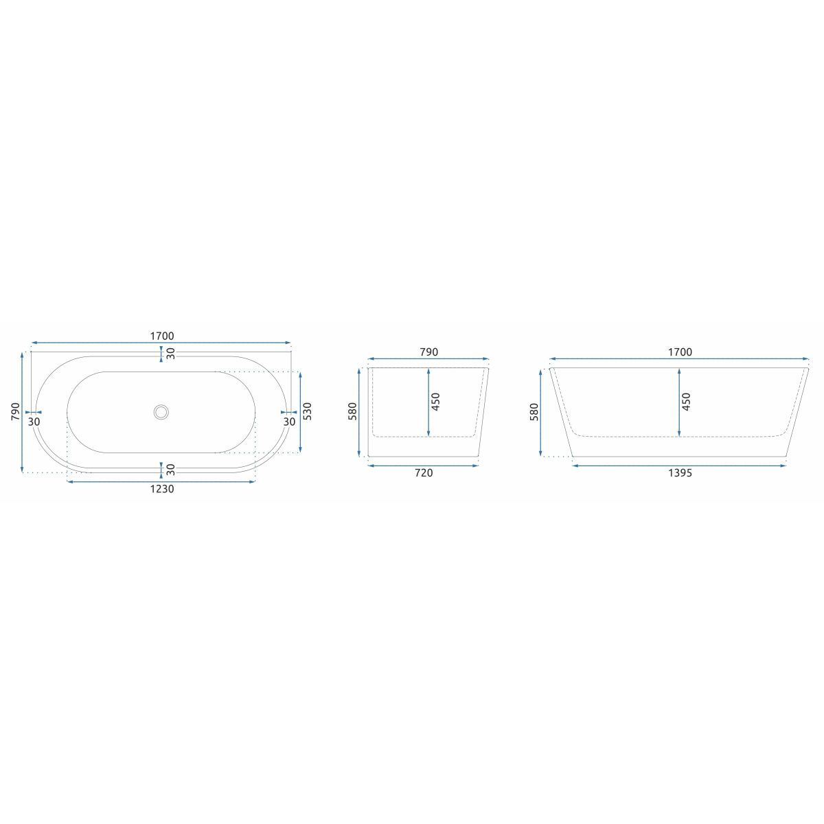 Rea Olimpia Wandmontierte Badewanne 170x79 cm rechteckig weiß REA-W0633