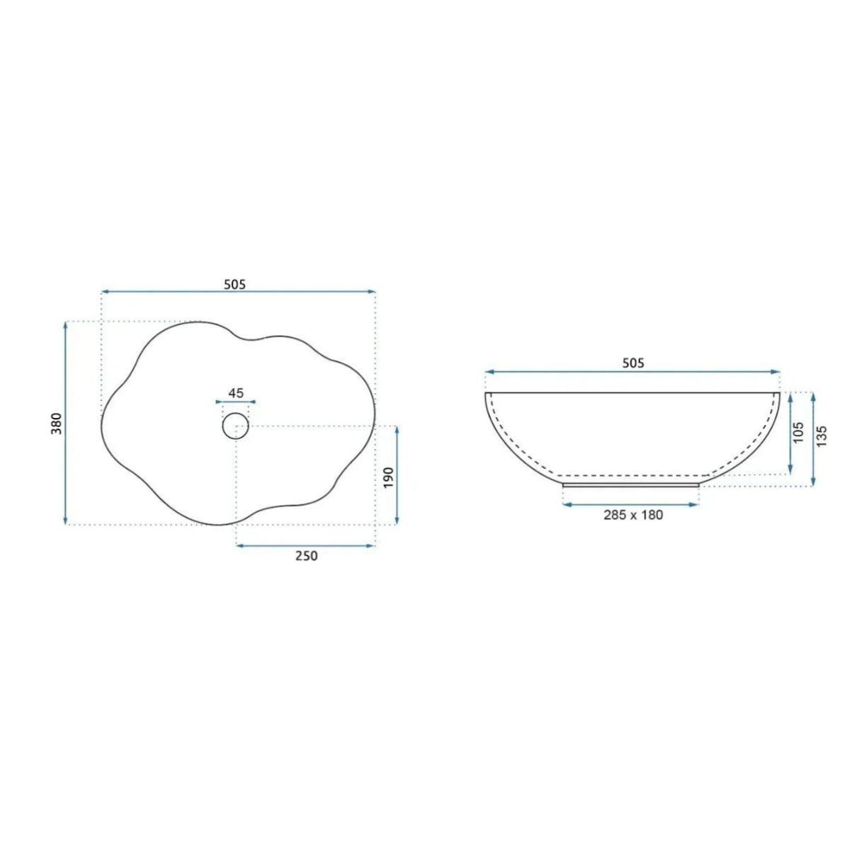 Rea Pearl Waschbecken 50.5x38 cm Aufsatzwaschbecken REA-U3309