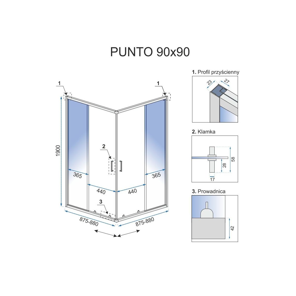 Rea Punto Dusche 90x90 cm quadratisch chrom Glanz/durchsichtiges Glas REA-K0867