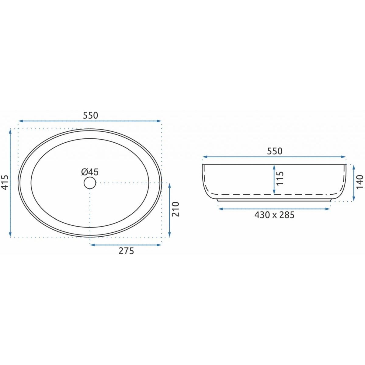 Rea Queen Waschbecken 55x41.5 cm oval Aufsatzwaschbecken weiß REA-U1223