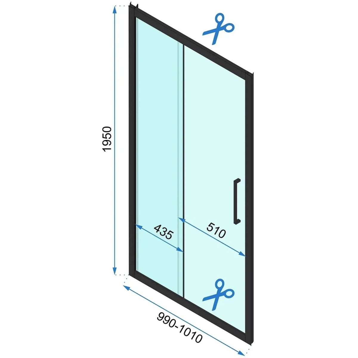 - Breite der Türscheibe B: 51 cm