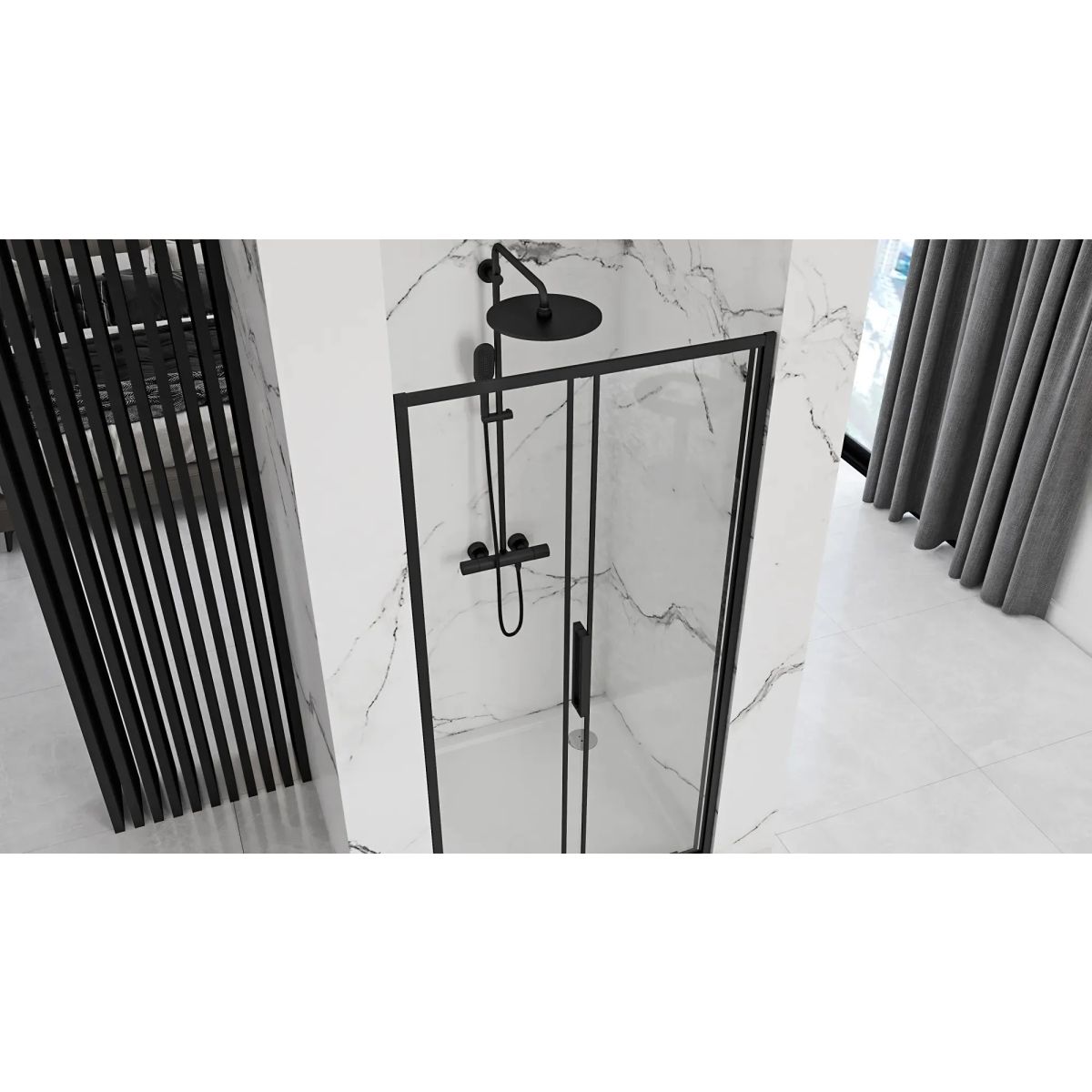 Rea Rapid Slide Duschtüren 100 cm Schiebe- schwarz seidenmatt/durchsichtiges Glas REA-K6400