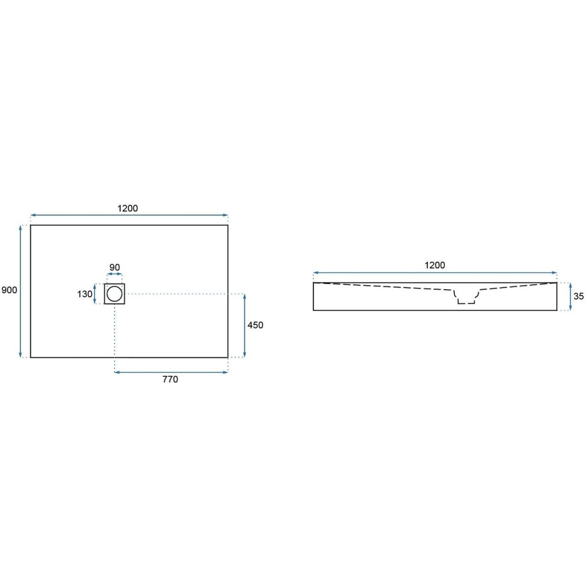 - Ablauf in der Mitte, an der kürzeren Seite der Duschwanne/in der Mitte der Duschwanne