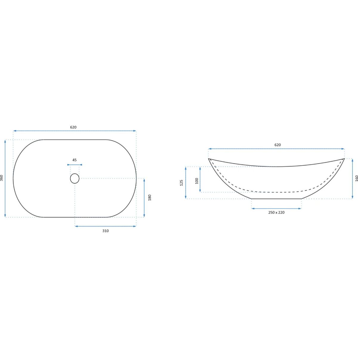 Rea Royal Waschbecken 62x36 cm oval Aufsatzwaschbecken weiß-schwarz REA-U6600
