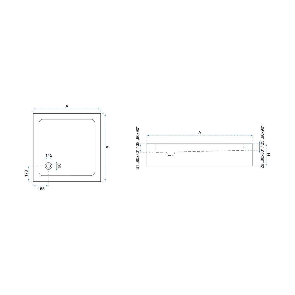 Rea Savoy Quadratische Duschwanne 79.7x79.7 cm weiß REA-K1906