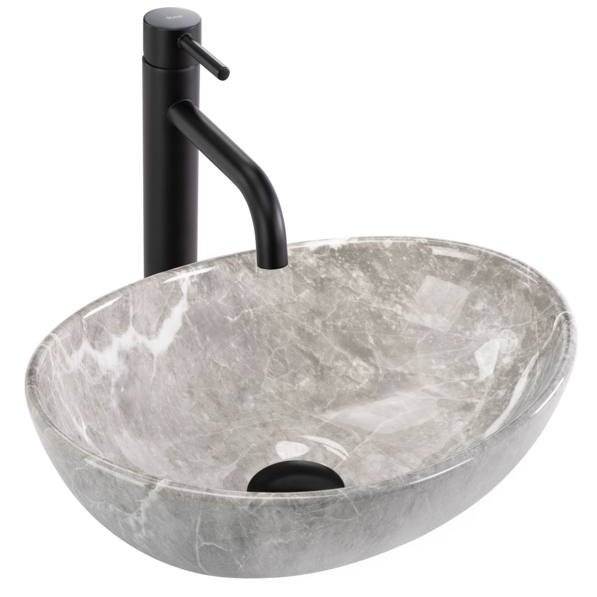 Rea Sofia Waschbecken 35x26 cm oval Aufsatzwaschbecken grauer Stein REA-U9237