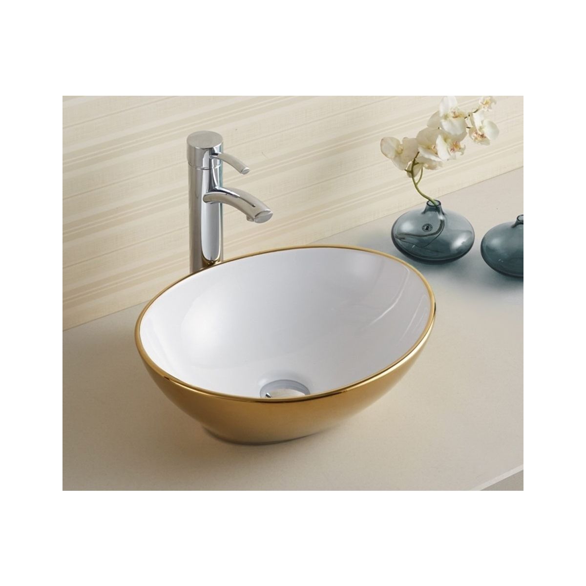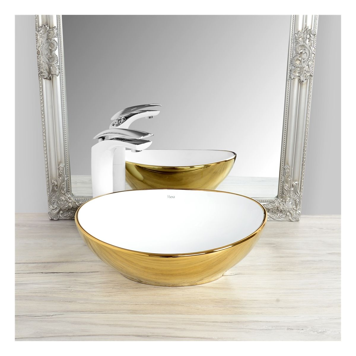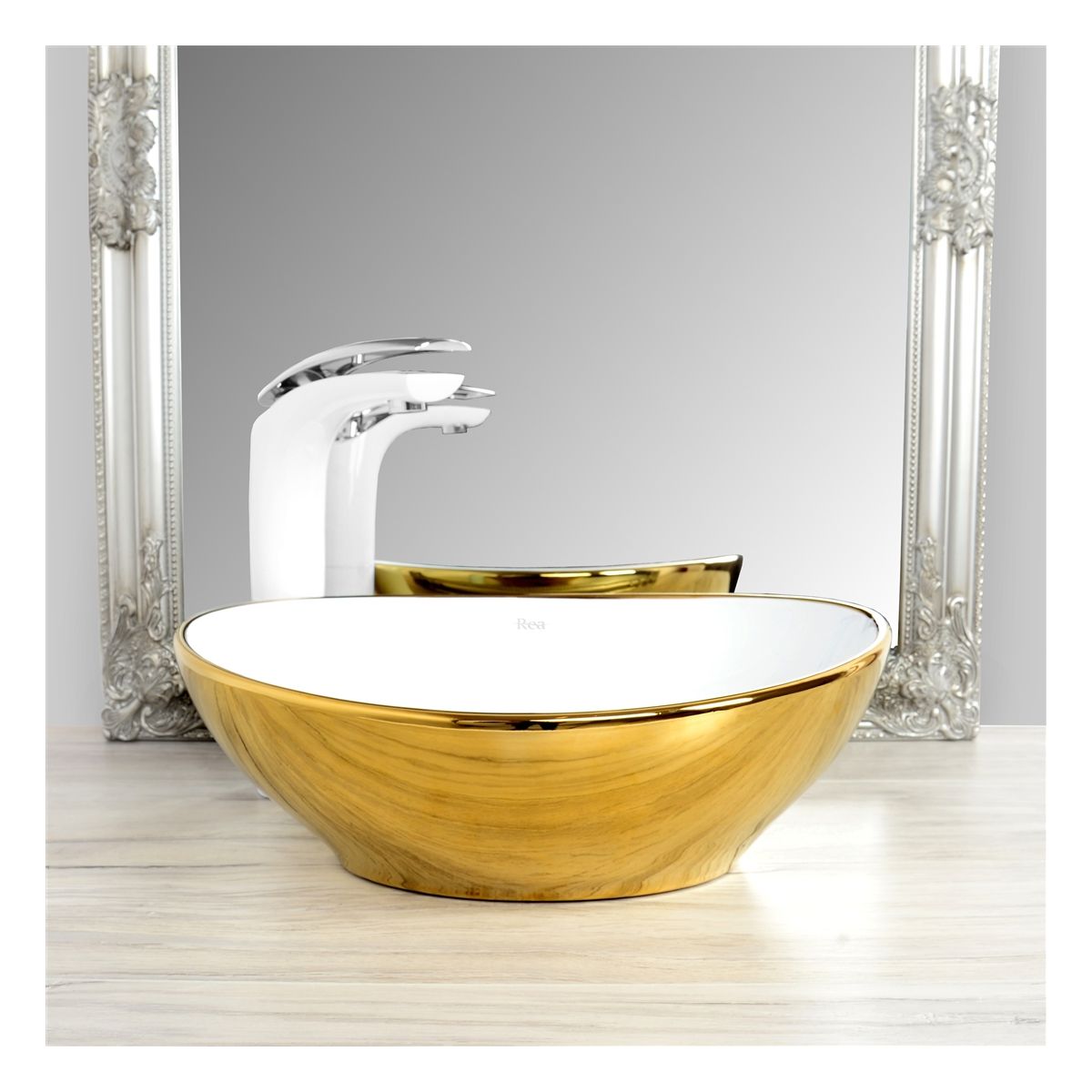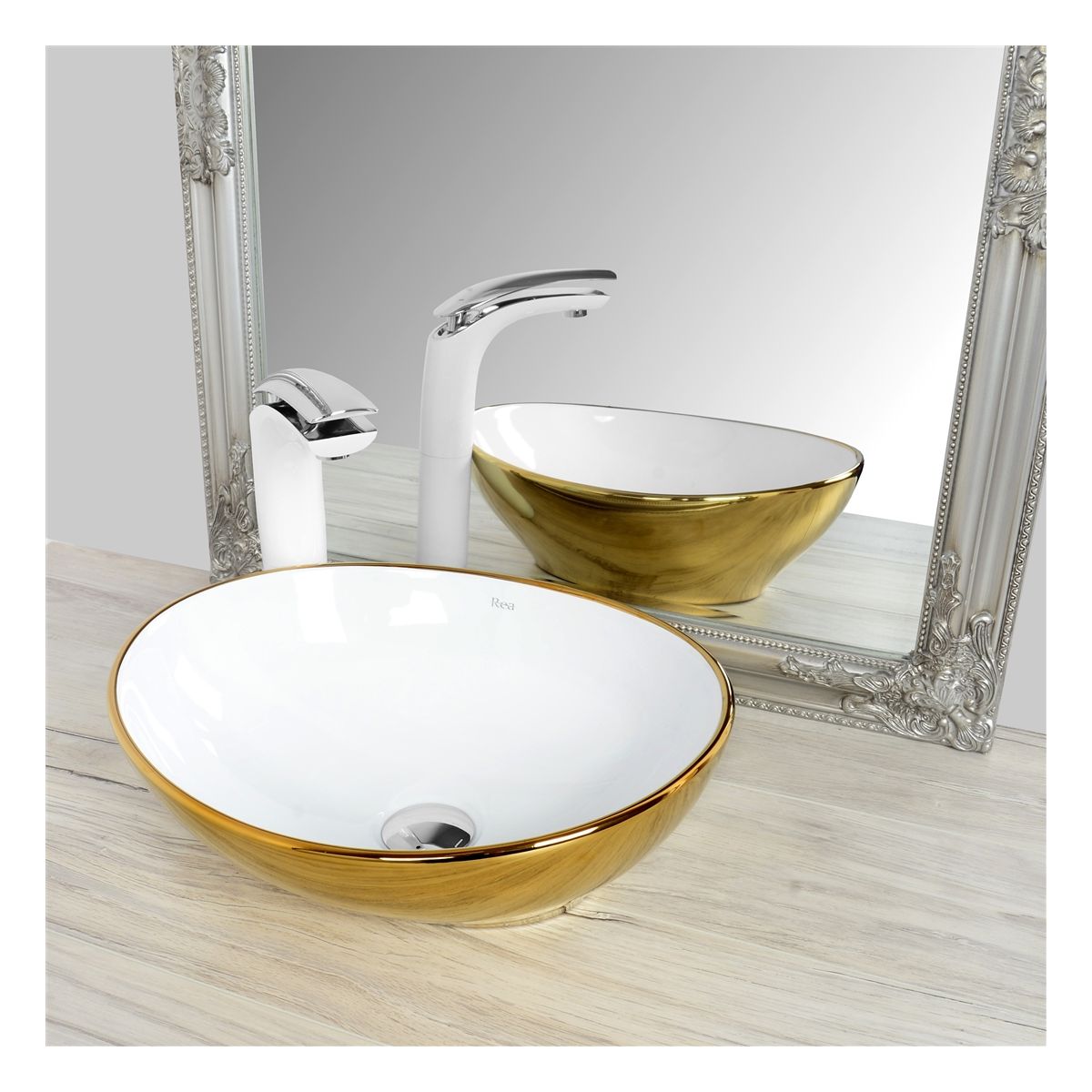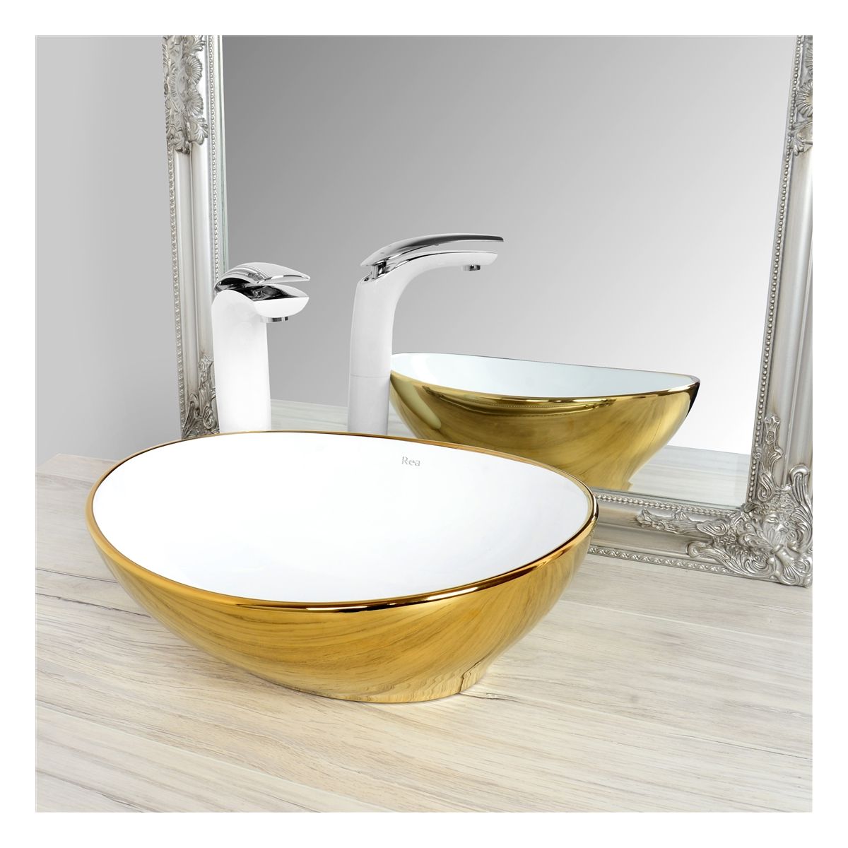 Rea Sofia Waschbecken 40.9x34.5 cm oval Aufsatzwaschbecken weiß-gold REA-U0456