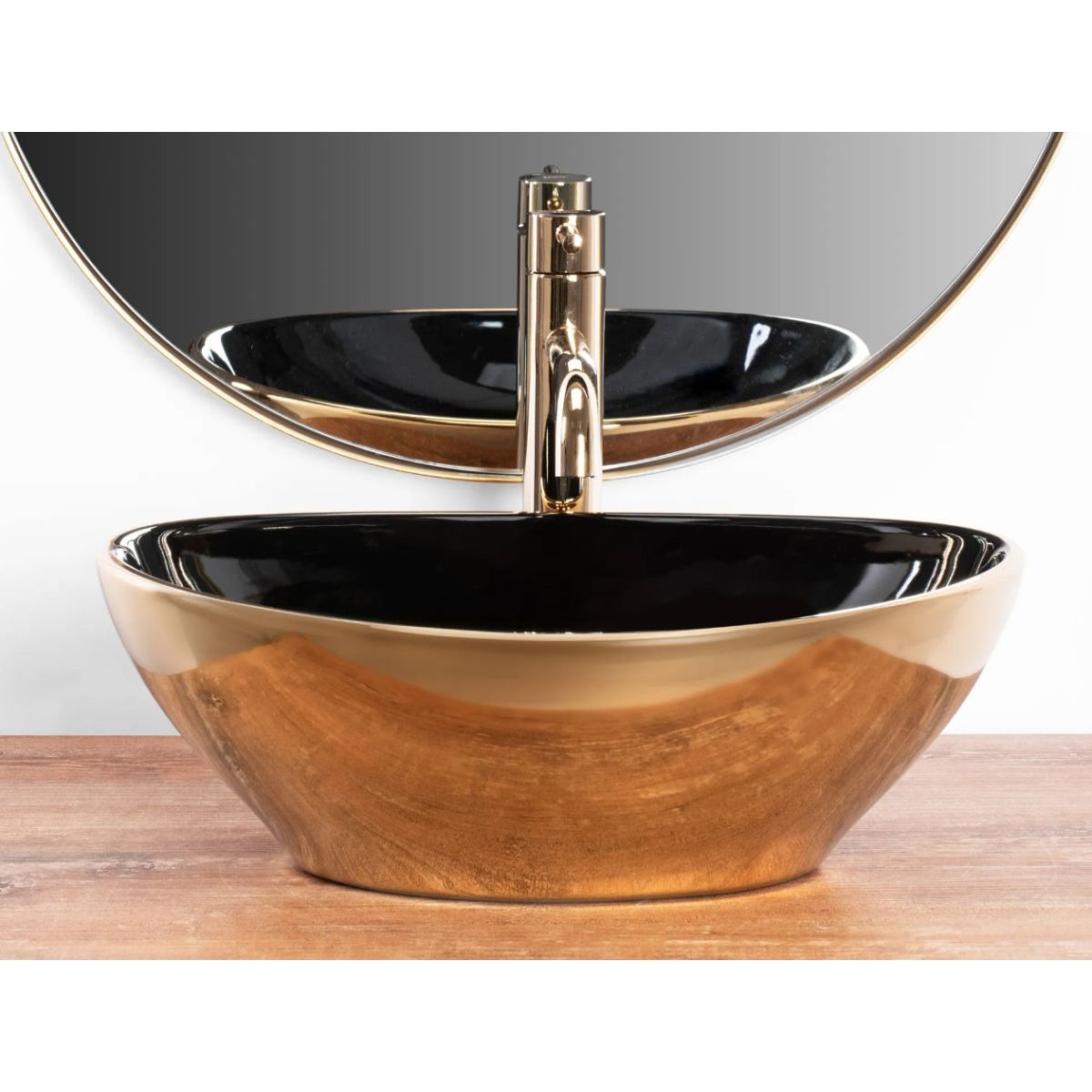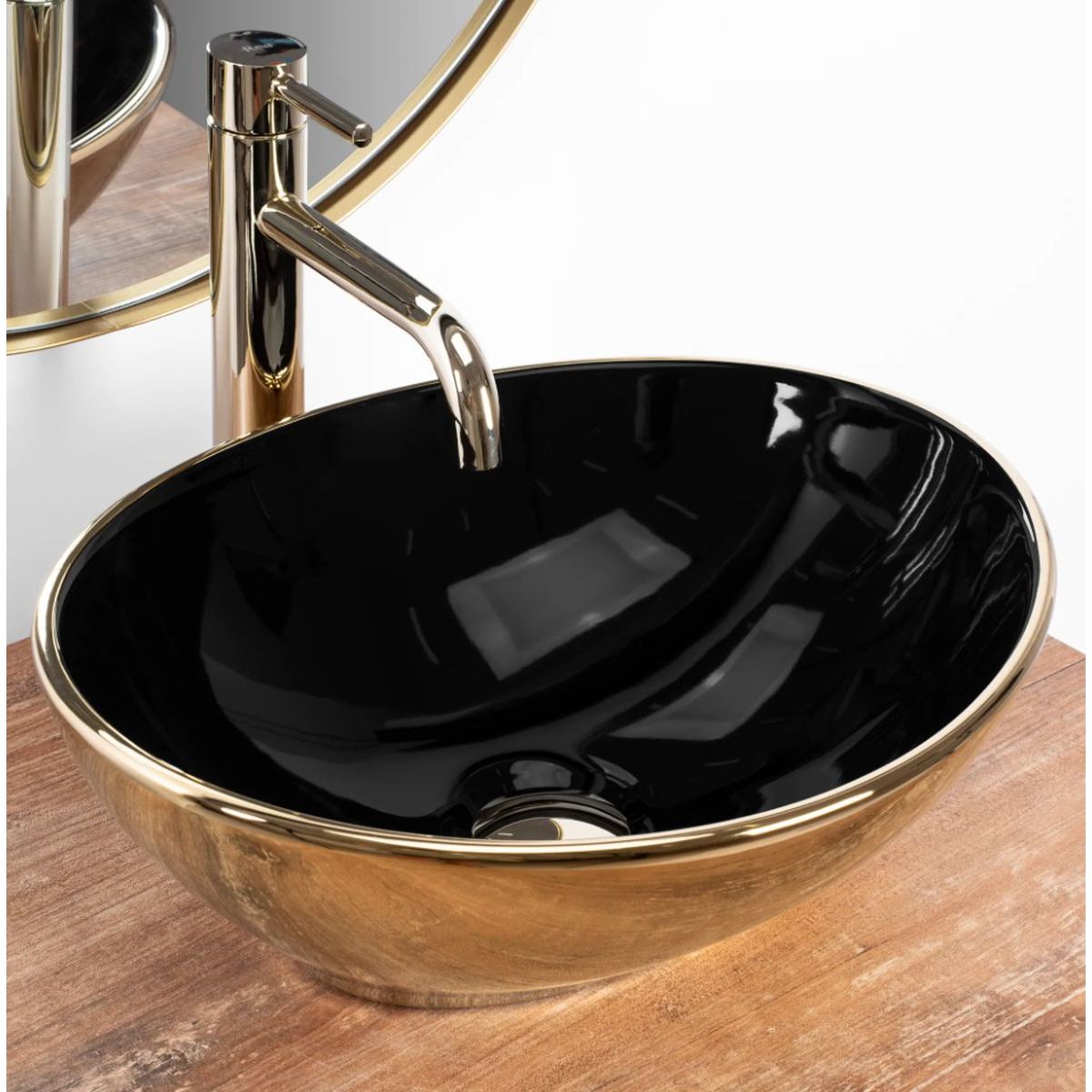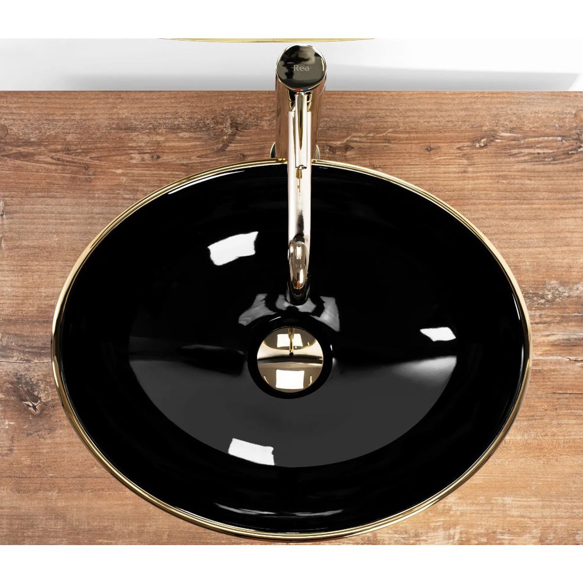 Rea Sofia Waschbecken 41x34.5 cm oval Aufsatzwaschbecken schwarz-gold REA-U4527