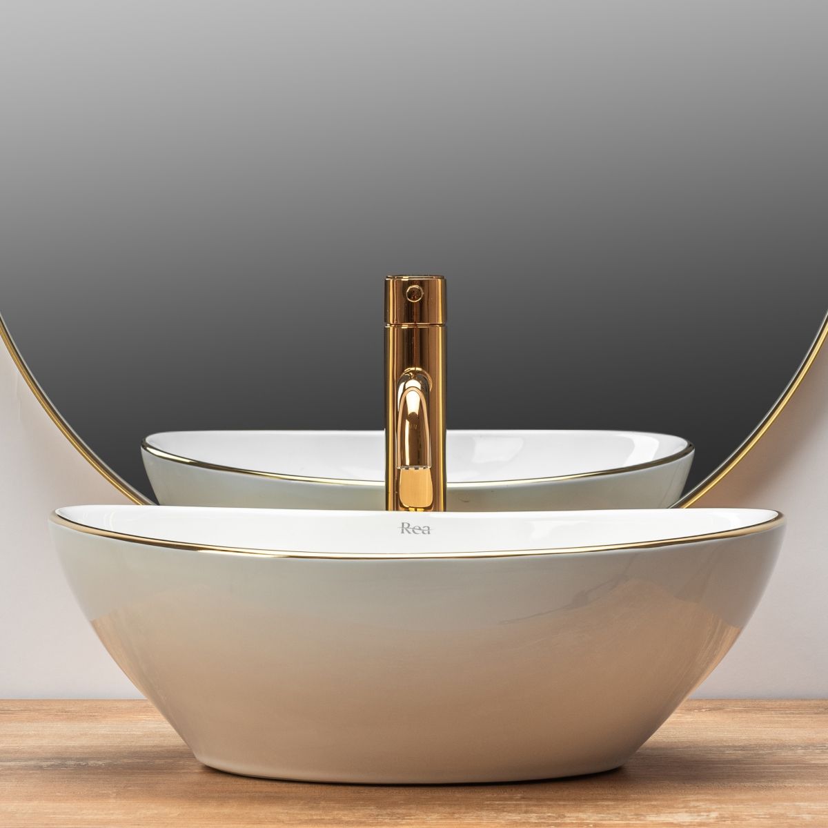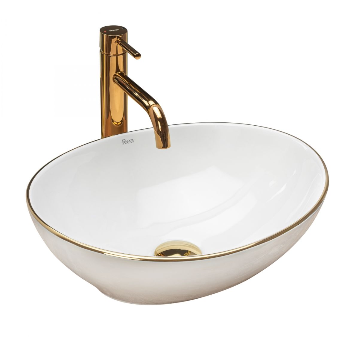 Rea Sofia Waschbecken 41x34.5 cm oval Aufsatzwaschbecken weiß-gold REA-U3287