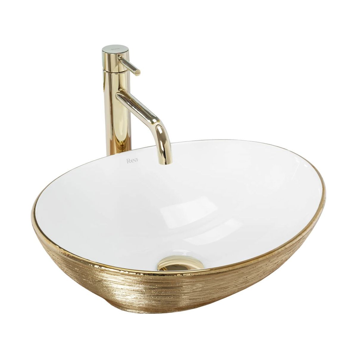 Rea Sofia Waschbecken 41x34.5 cm oval Aufsatzwaschbecken weiß-gold REA-U3697
