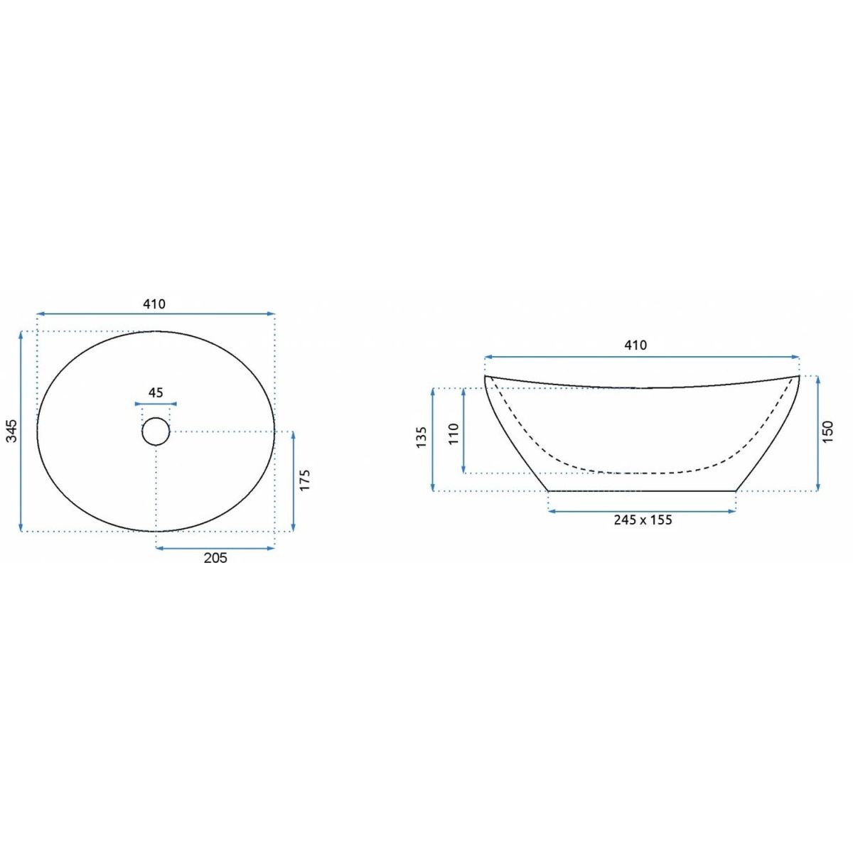 Rea Sofia Waschbecken 41x34.5 cm oval Aufsatzwaschbecken weiß REA-U0133