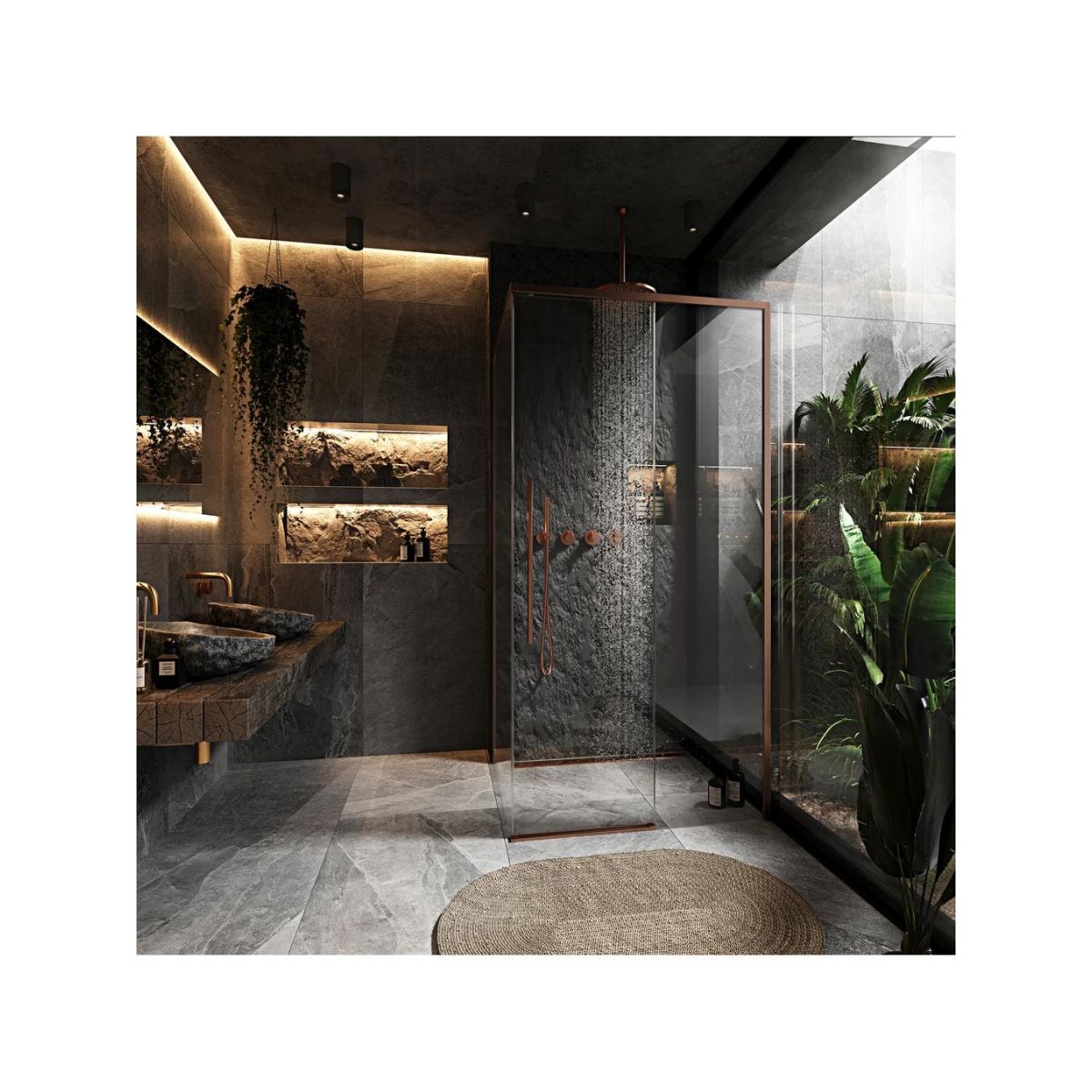 Rea Solar Brush Copper Dusche 100x80 cm rechteckig kupfer Matte/durchsichtiges Glas REA-K9513
