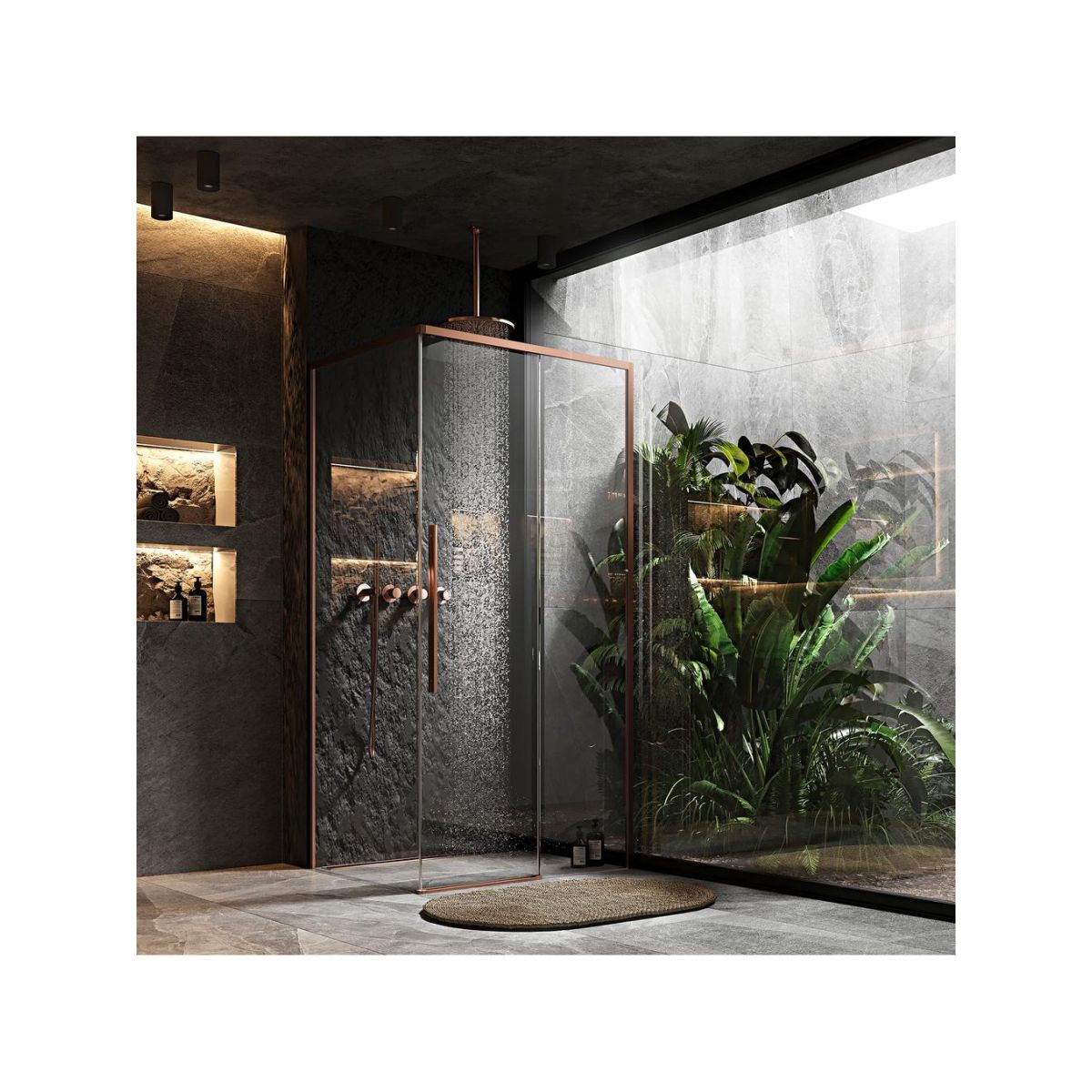 Rea Solar Brush Copper Dusche 90x90 cm quadratisch kupfer Matte/durchsichtiges Glas REA-K9512