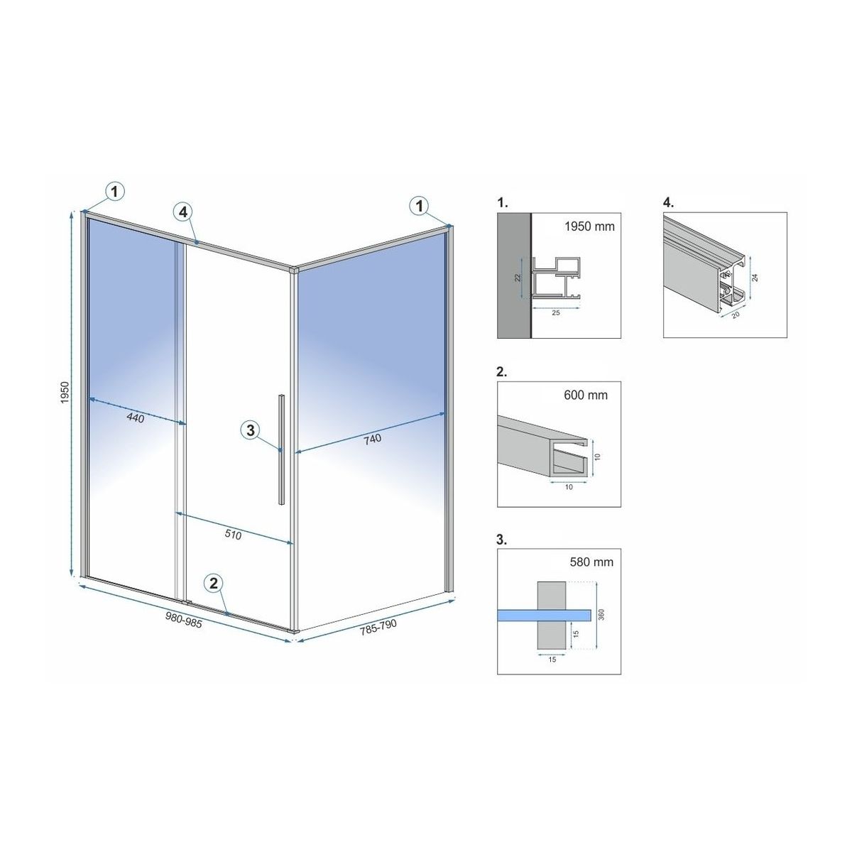 Rea Solar Gold Dusche 100x80 cm rechteckig gold Glanz/durchsichtiges Glas REA-K4901