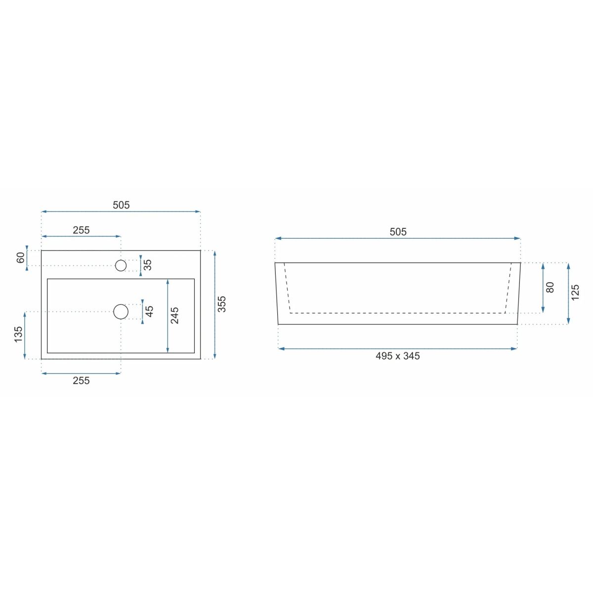 Rea Valeria Waschbecken 50.5x35.5 cm rechteckig Aufsatzwaschbecken weiß REA-U5000