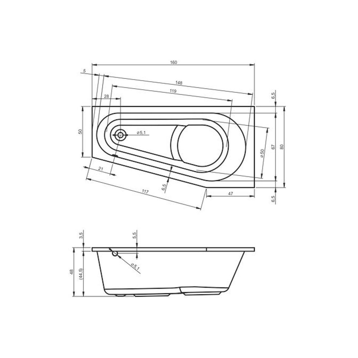 Riho Delta Eckbadewanne 160x80 cm linksseitig weiß B069001005
