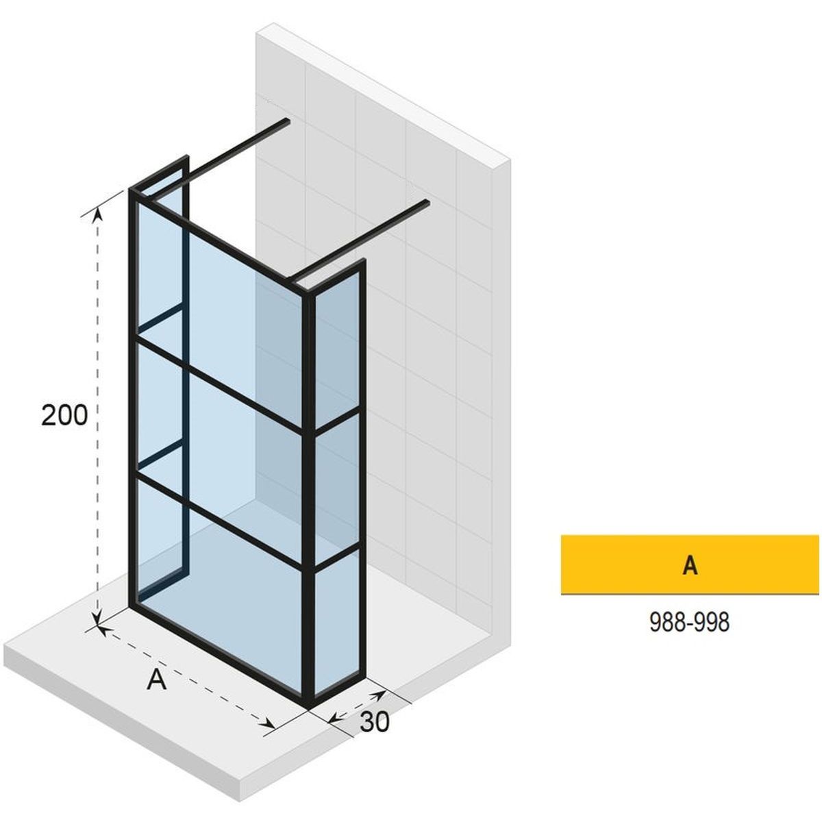 - tatsächliche Abmessung der Vorderwand (A): 98,8 - 99,8 cm