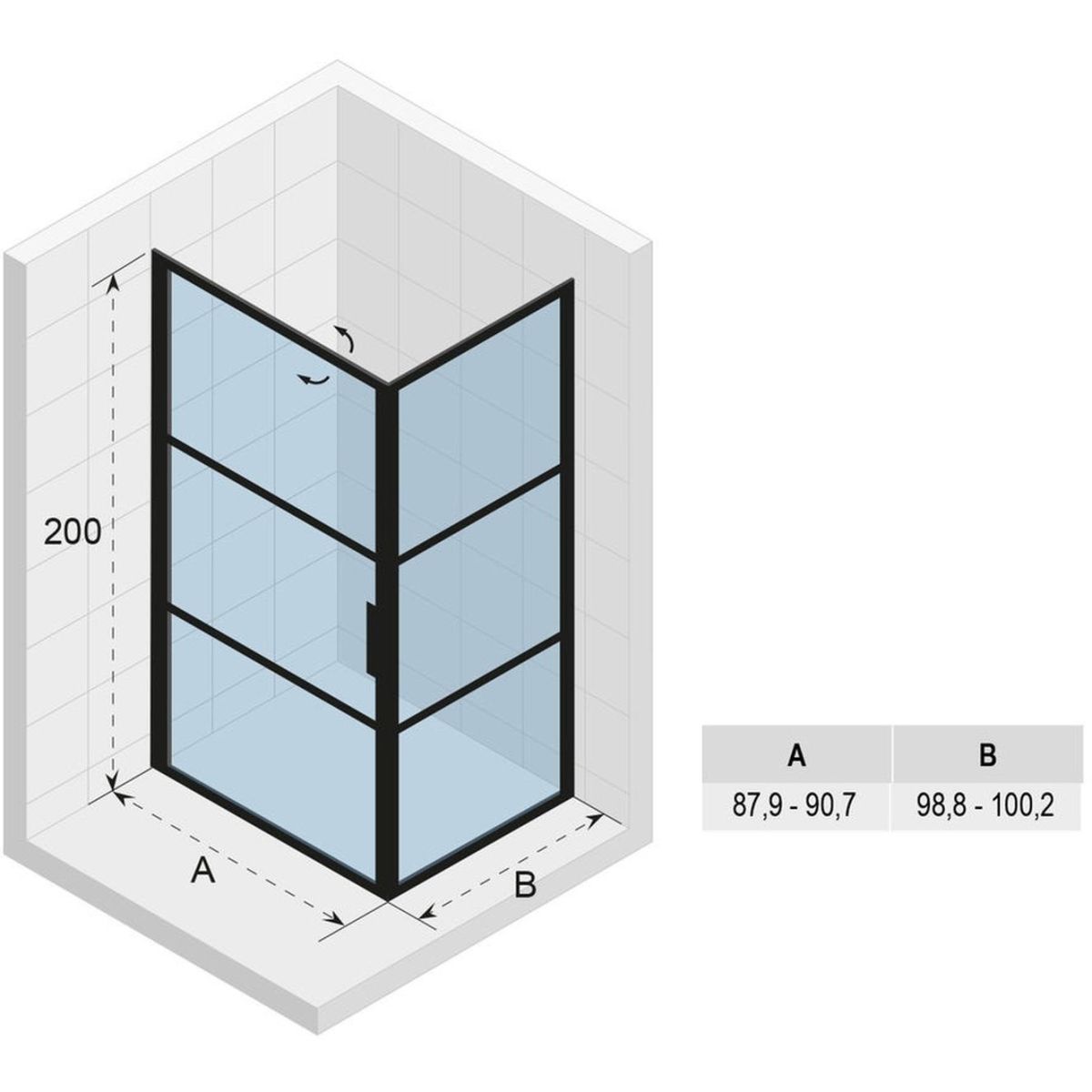 - Einstellbereich (AxB): 87,9-90,7 x 98,8-100,2 cm