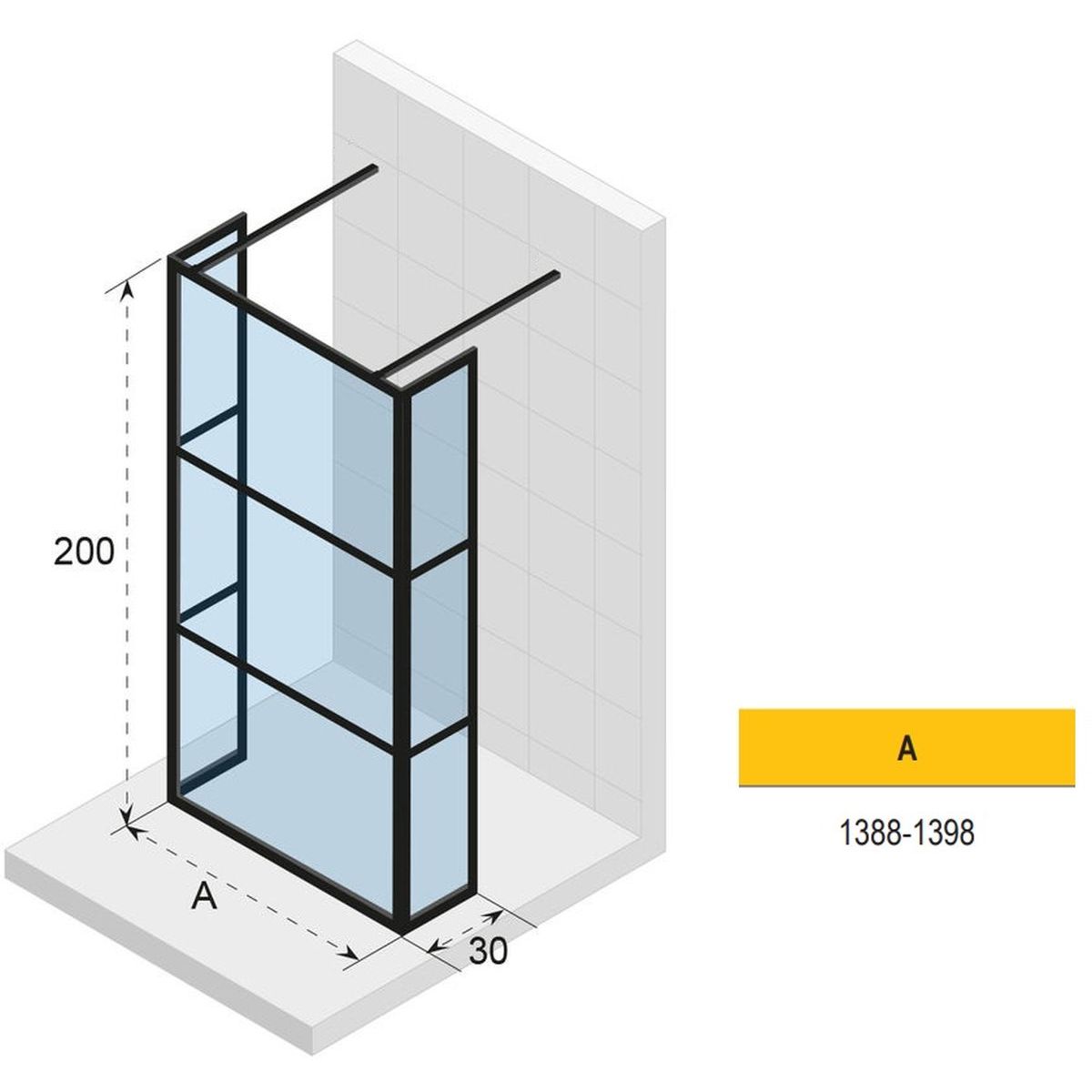Riho Grid Dusche 140x30 cm schwarz Matte/Glas mit Muster G004036121