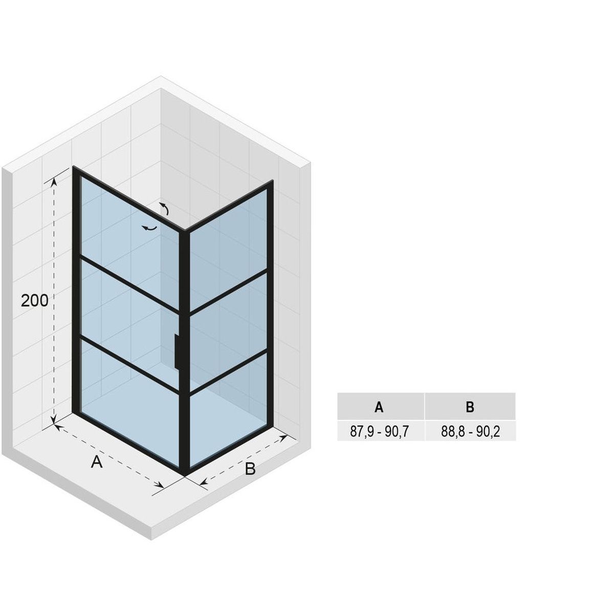 - Verstellbereich (AxB): 87,9-90,7 x 88,8-90,2 cm