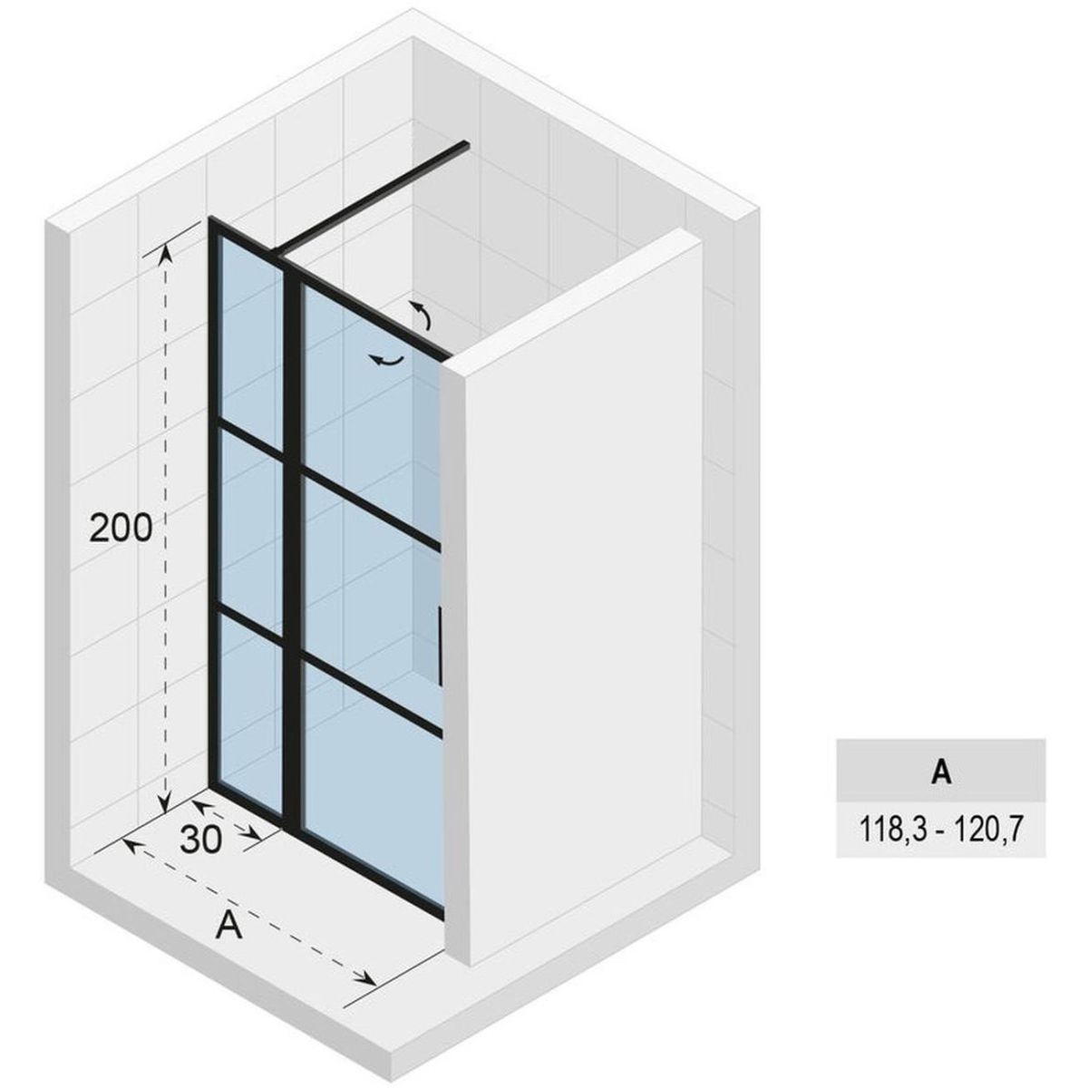 Riho Grid Duschtüren 120 cm aufklappbar schwarz Matte/Glas mit Muster G004005121
