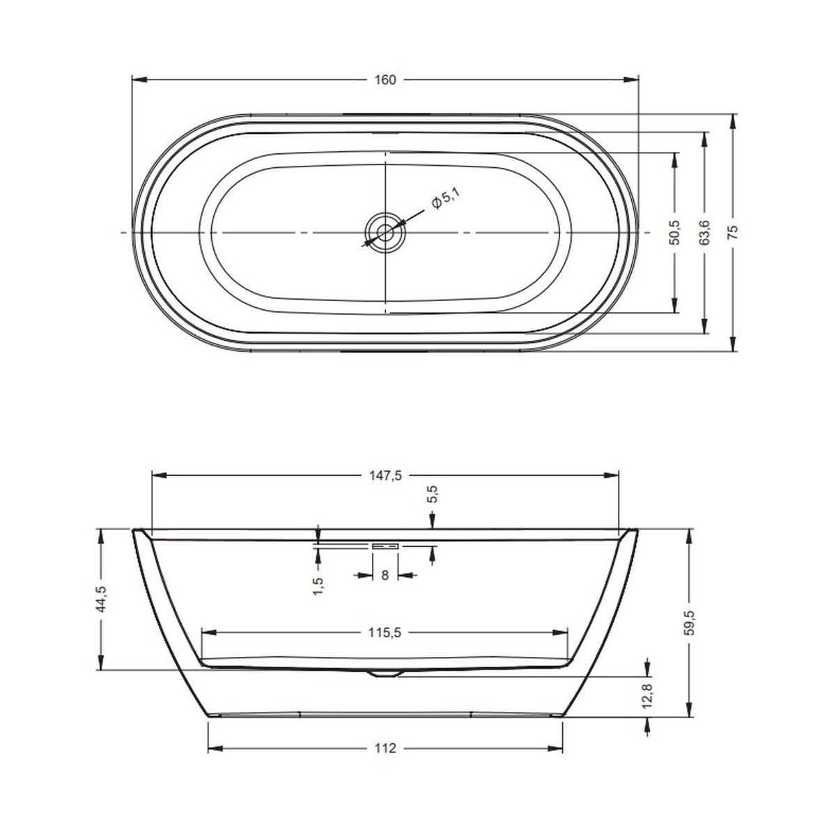Riho Inspire Freistehende Badewanne 160x75 cm oval weiß B091001105