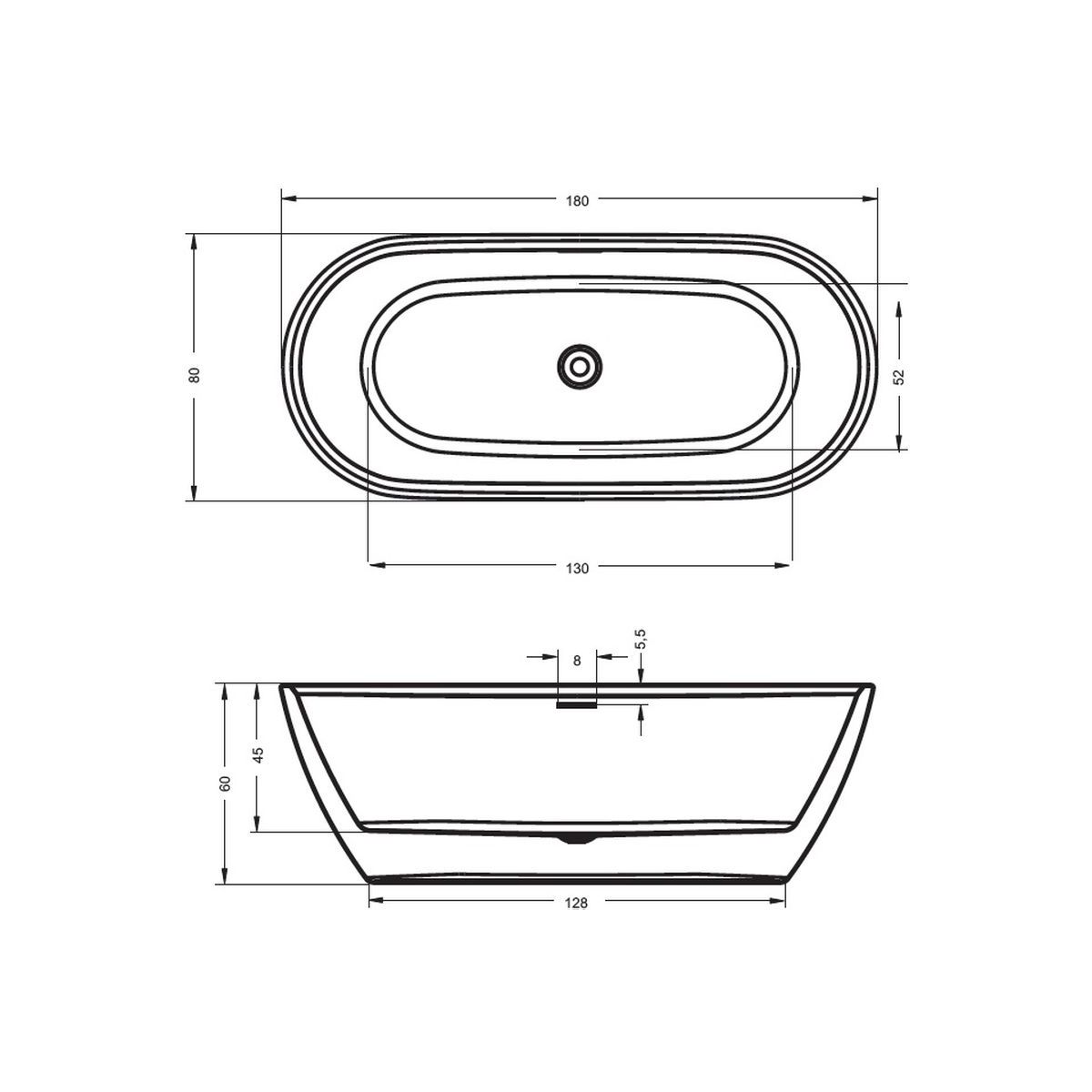 Riho Inspire Freistehende Badewanne 180x80 cm oval weiß B085004105