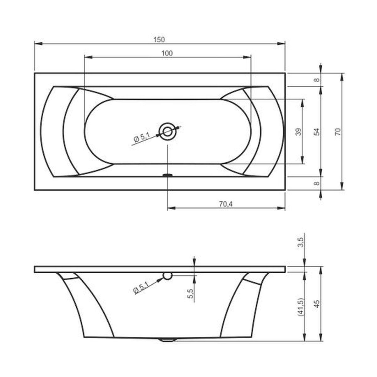 Riho Lima Rechteckige Badewanne 150x70 cm weiß B049001005