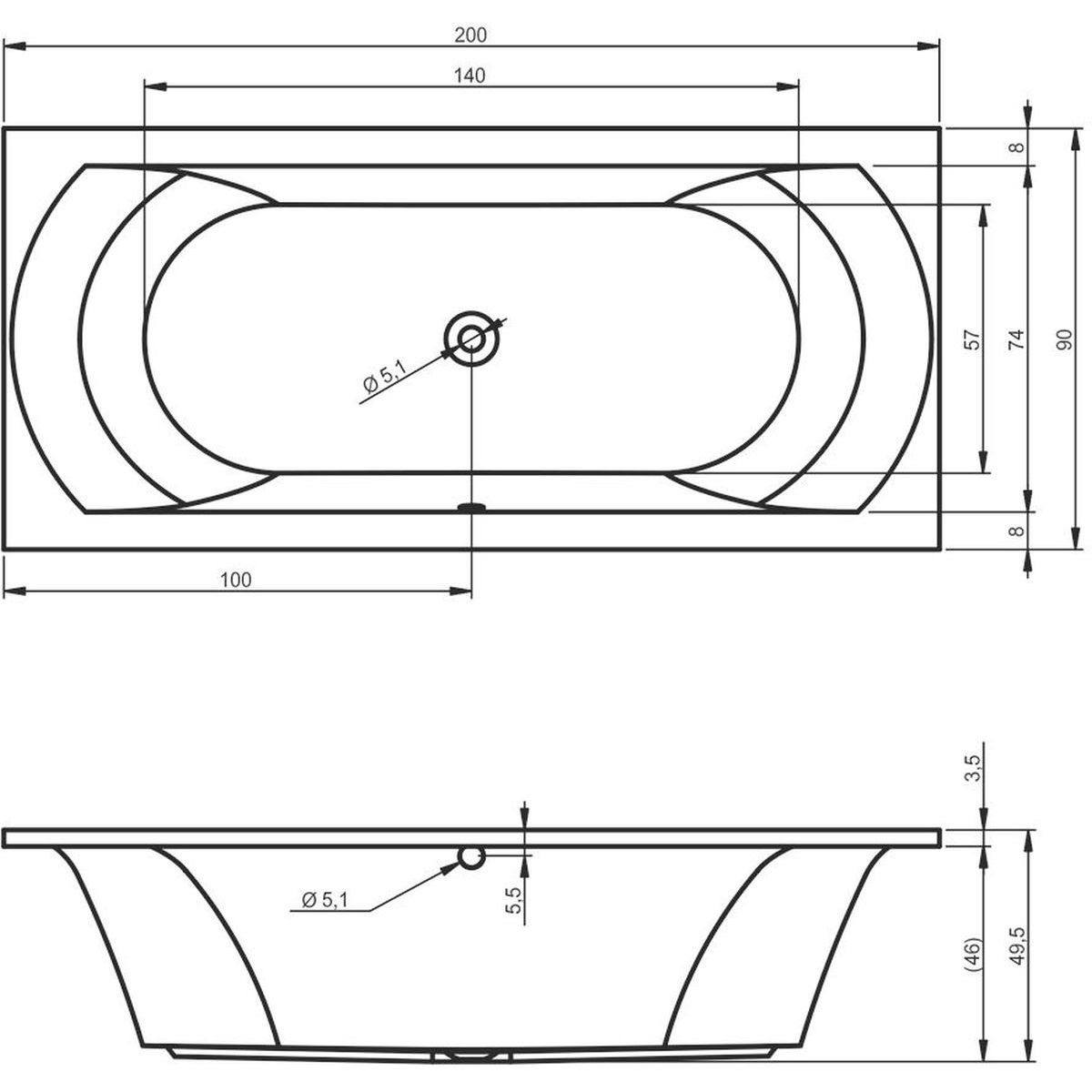 Riho Lima Rechteckige Badewanne 200x90 cm weiß B054001005