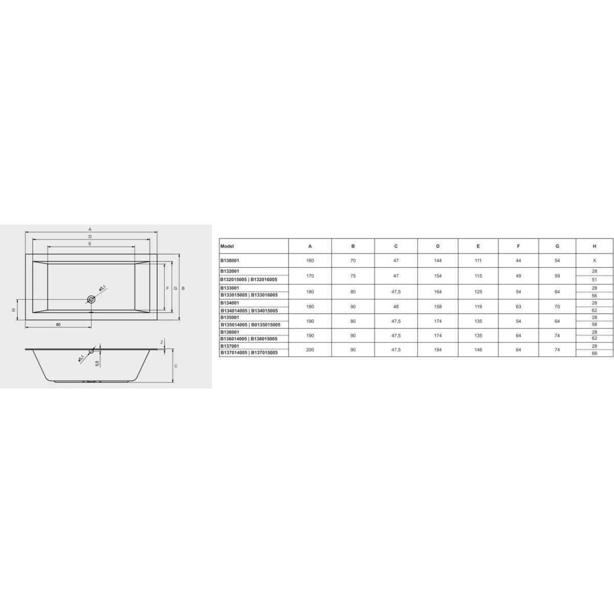 Riho Lugo Rechteckige Badewanne 180x80 cm weiß B133001005