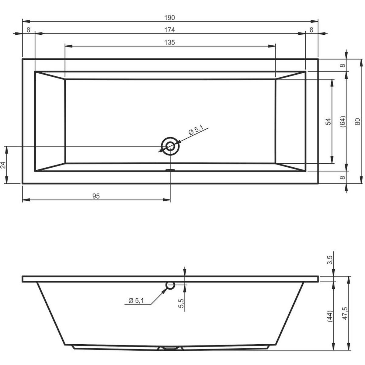 Riho Lusso Rechteckige Badewanne 190x80 cm weiß B015001005
