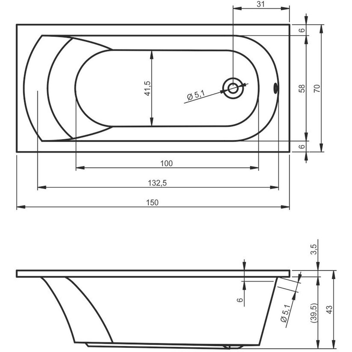 Riho Miami Rechteckige Badewanne 150x70 cm weiß B058001005