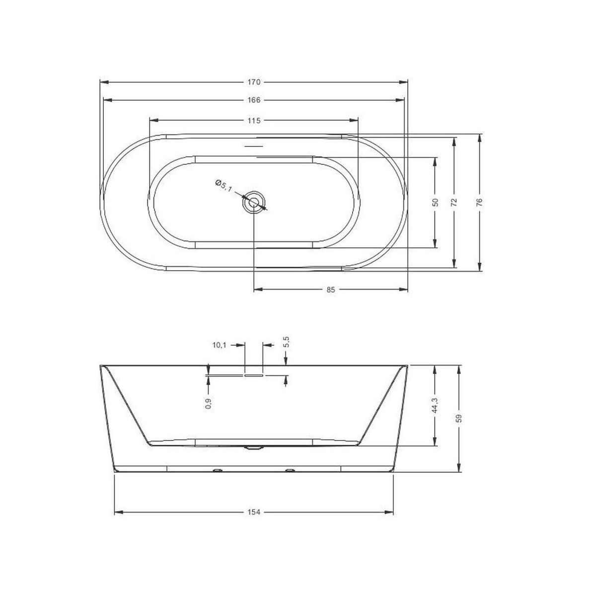 Riho Modesty Freistehende Badewanne 170x76 cm oval weiß B090001005