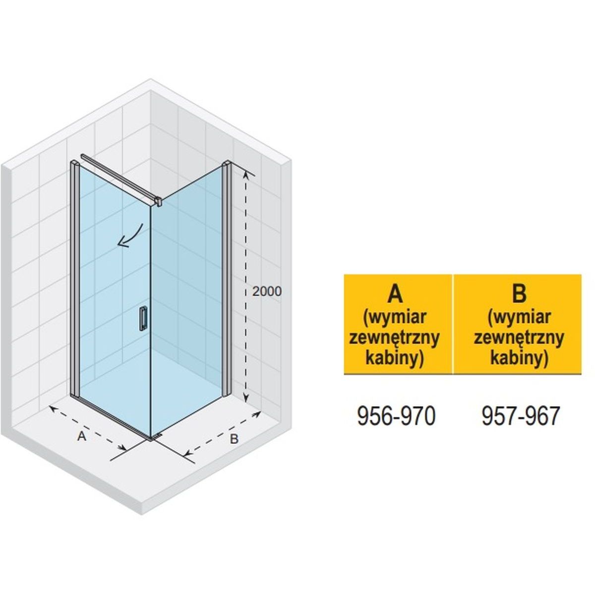 - Außenmaße der Kabine (AxB): 95,6-97 x 95,7-96,7 cm