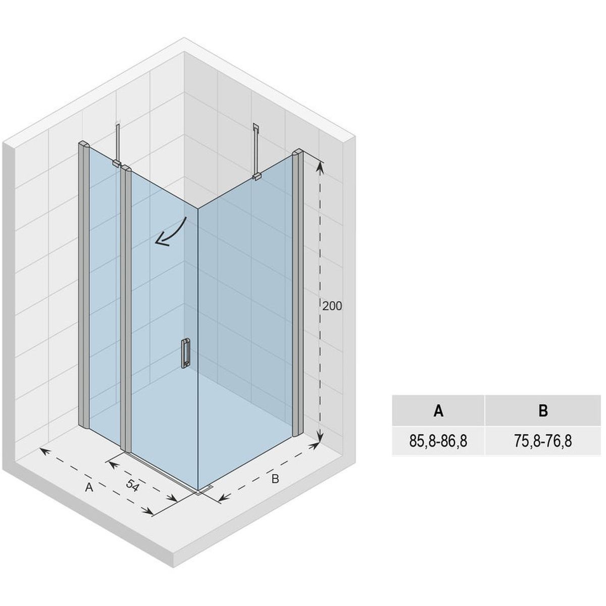 - Außenmaße der Kabine (AxB): 85,8-86,8 x 75,8-76,8 cm