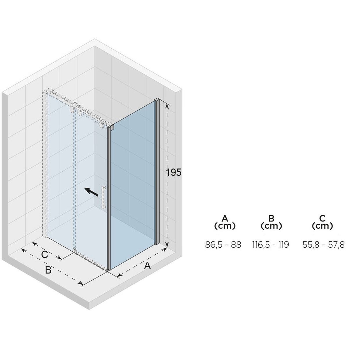 - tatsächliche Abmessung der Tür (B): 116,5 - 119 cm