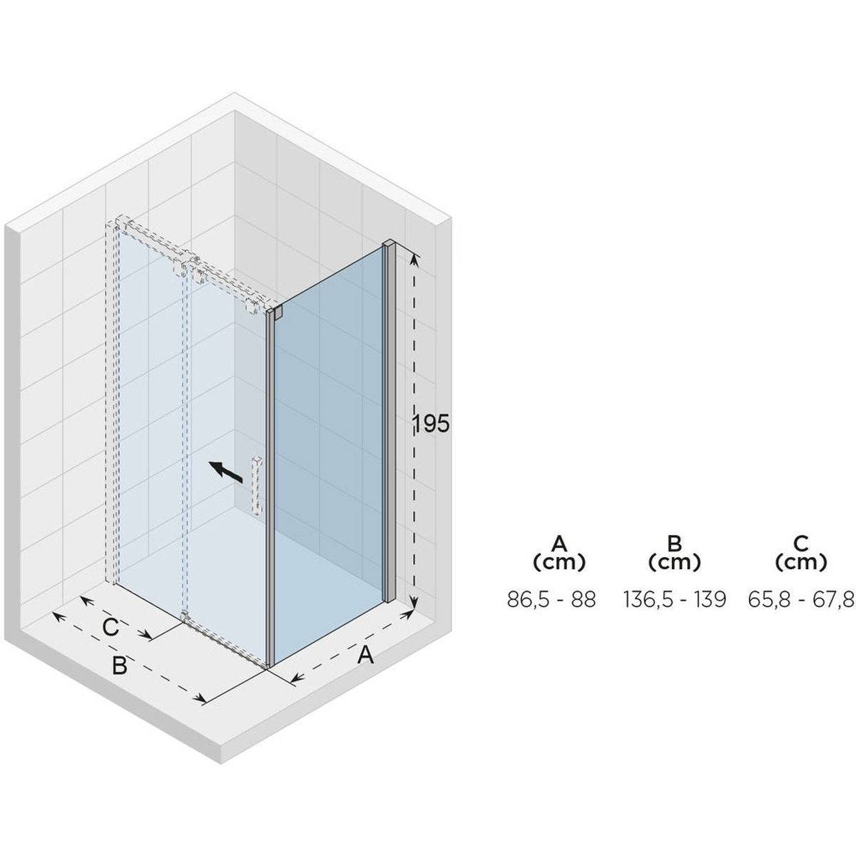 - tatsächliche Abmessung der Tür (B): 136,5 - 139 cm