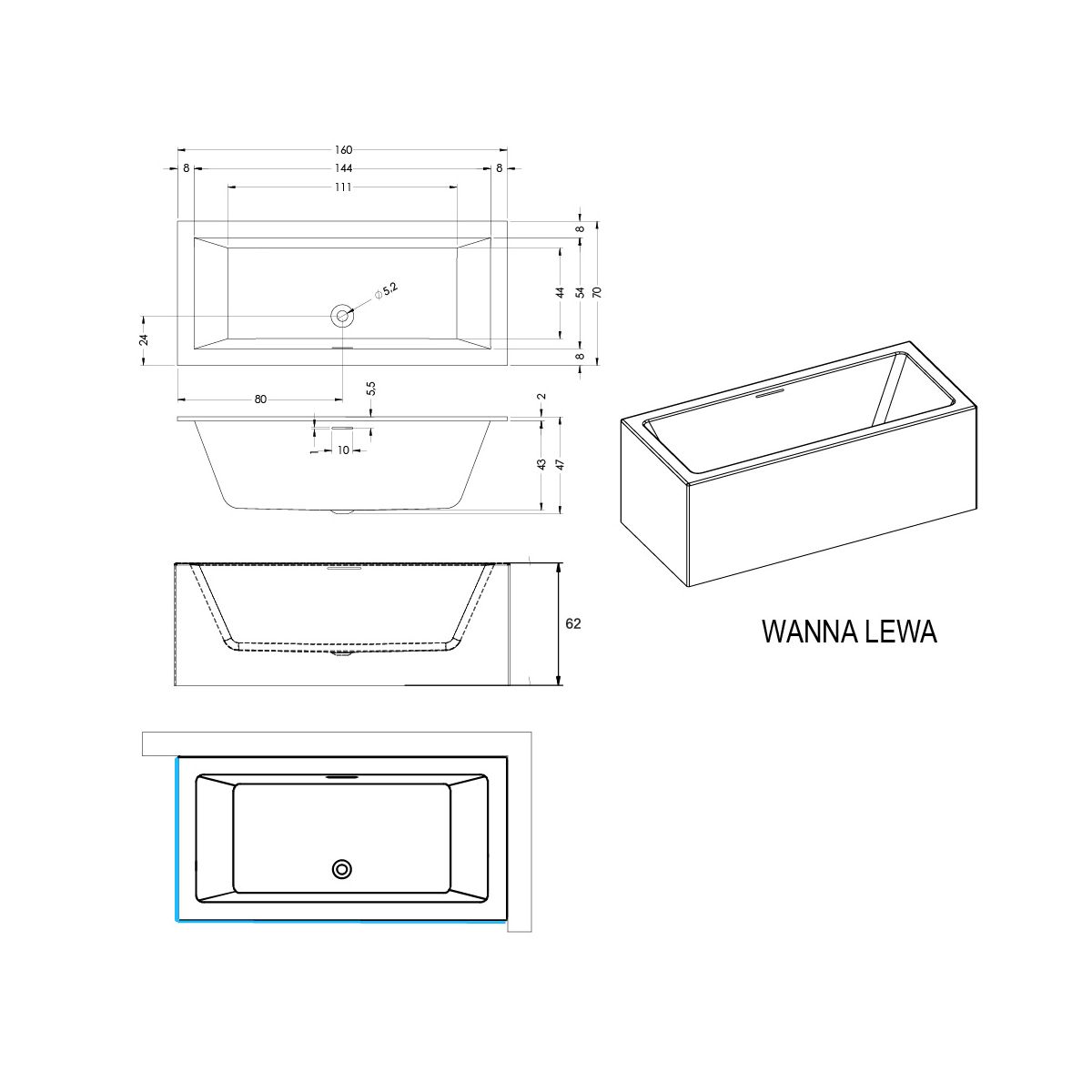 Die Plug&Play-Badewannenkollektion umfasst Badewannen, bei denen die lange und kurze Seite oder die Vorderseite (Eckversionen) der Badewanne mit Frontverkleidungen aus dem gleichen Acrylmaterial wie die Badewanne ausgestattet sind. Sie bilden zusammen eine Einheit ohne sichtbare Verbindungsstellen. Diese Lösung ermöglicht eine viel schnellere Installation im Vergleich zu herkömmlichen Fliesenverkleidungen und garantiert eine ästhetische Einheitlichkeit. Die Höhe der Plug&Play-Badewanne beträgt 62 cm.