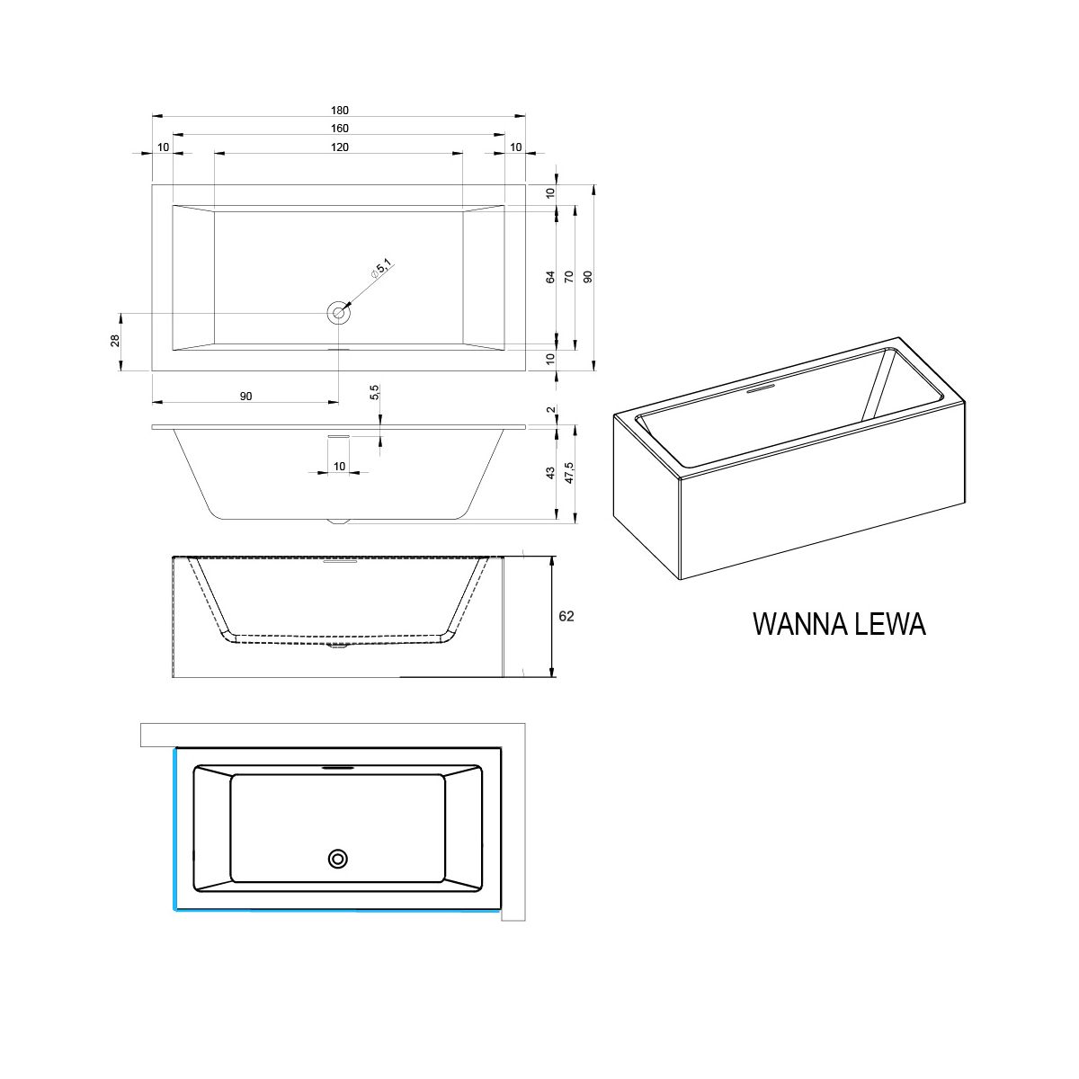 Die Plug&Play-Badewannenkollektion umfasst Badewannen, bei denen die lange und kurze Seite oder die Vorderseite (Eckmodelle) mit Frontverkleidungen aus dem gleichen Acrylmaterial wie die Badewanne ausgestattet sind. Sie bilden zusammen eine Einheit ohne sichtbare Verbindungsstellen. Diese Lösung ermöglicht eine viel schnellere Installation im Vergleich zu herkömmlichen Fliesenverkleidungen und garantiert eine ästhetische Einheitlichkeit. Die Höhe der Plug&Play-Badewanne beträgt 62 cm.