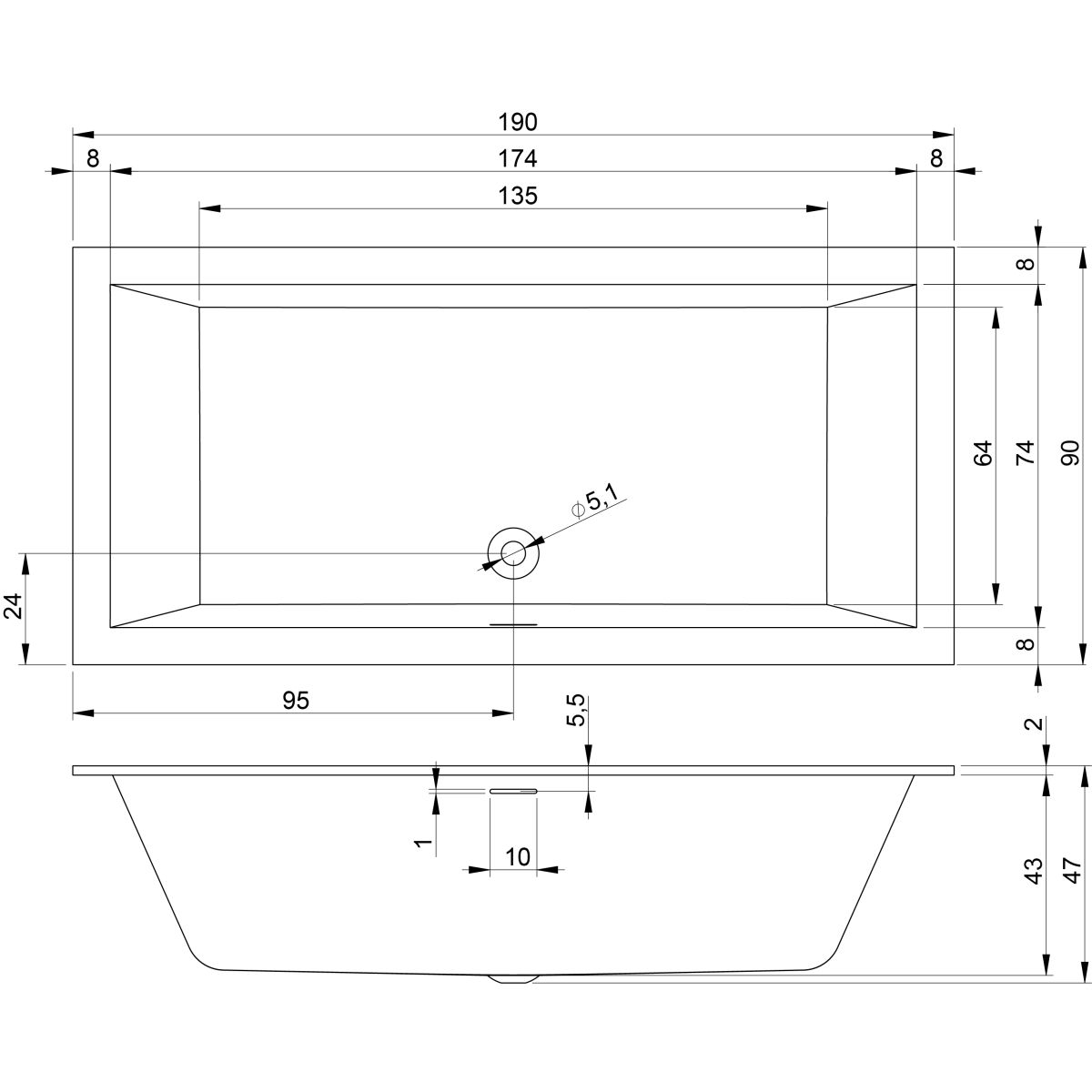 - niedriger Rand der Wanne 2 cm