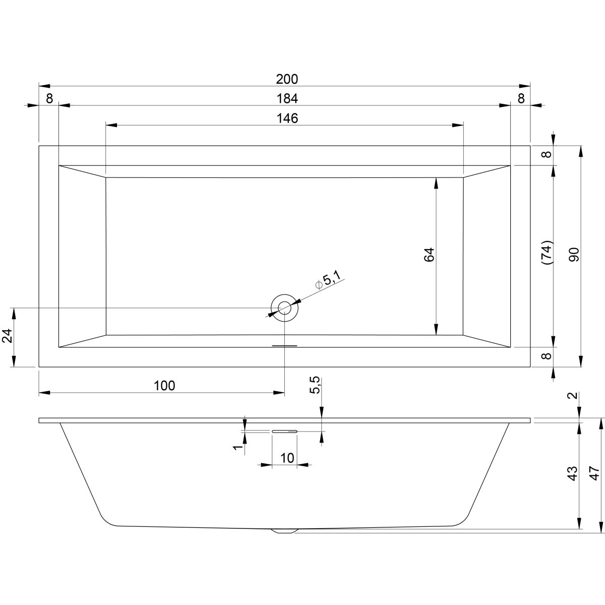 - niedriger Rand der Wanne 2 cm