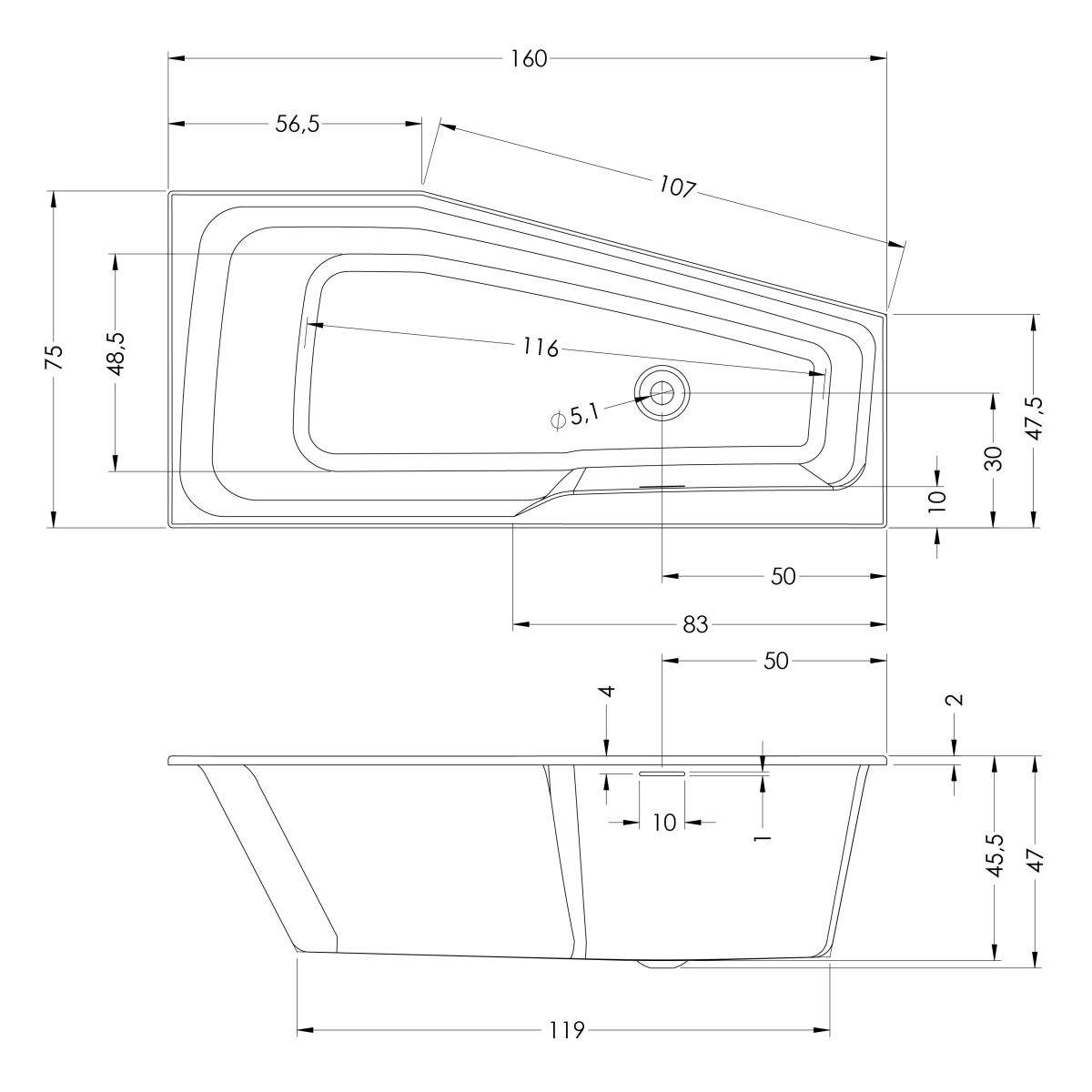 - niedriger Wannenrand (2 cm)