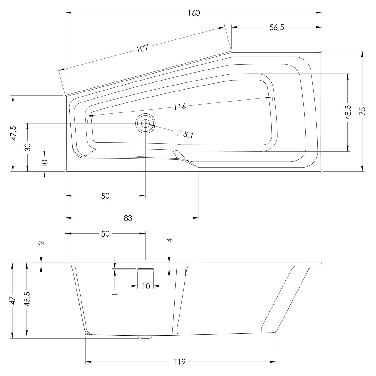 Riho Rethink Space Eckbadewanne 160x75 cm rechtsseitig weiß B111001005