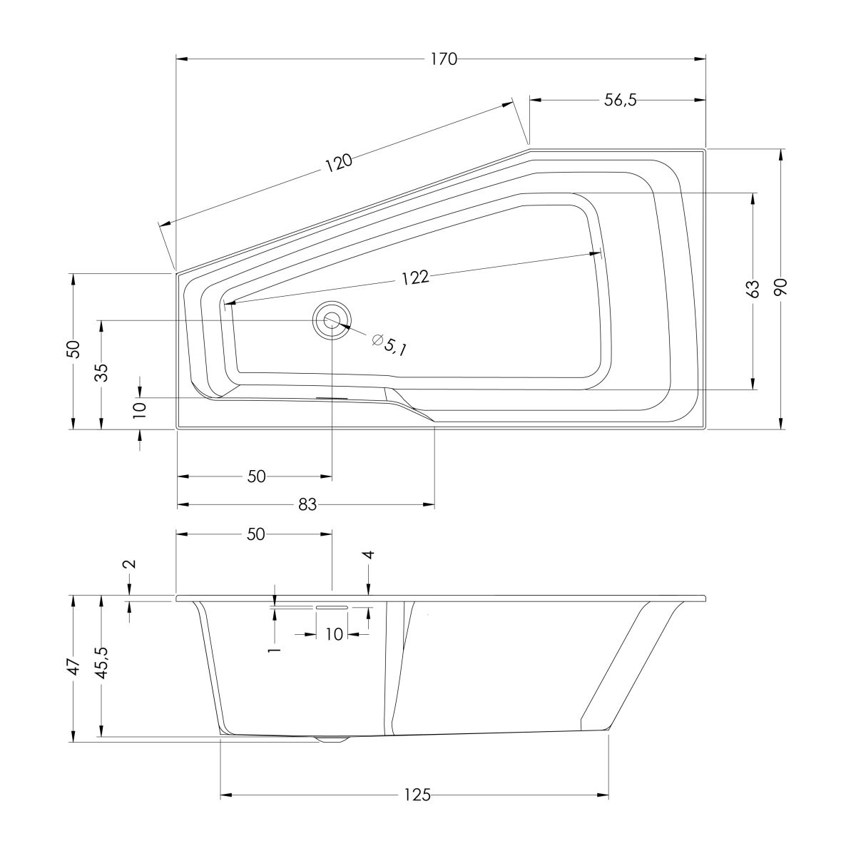 - asymmetrische Eckwanne