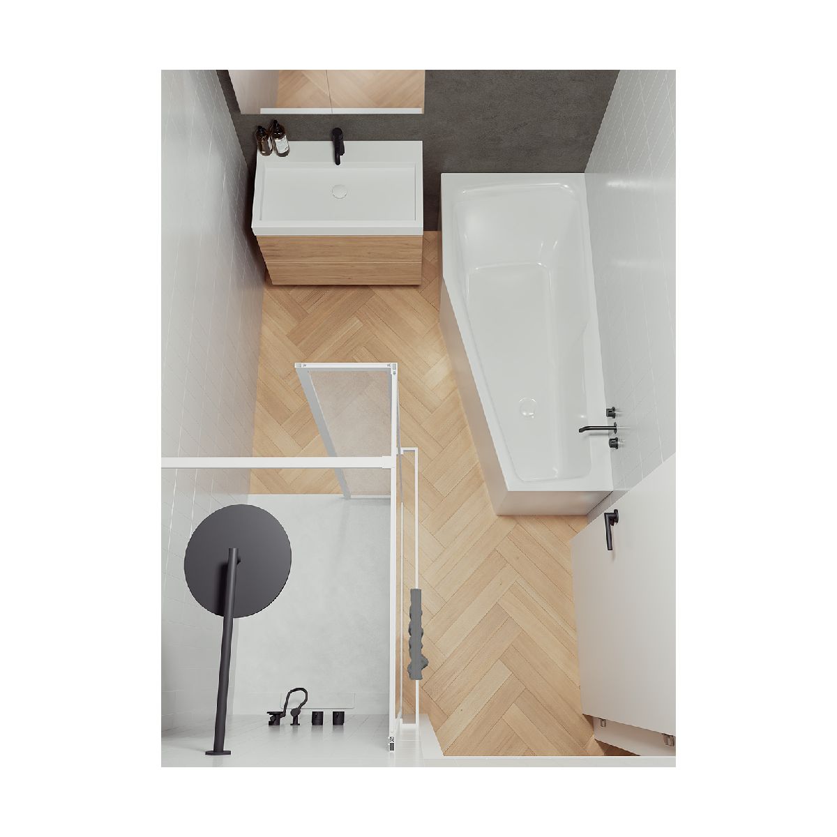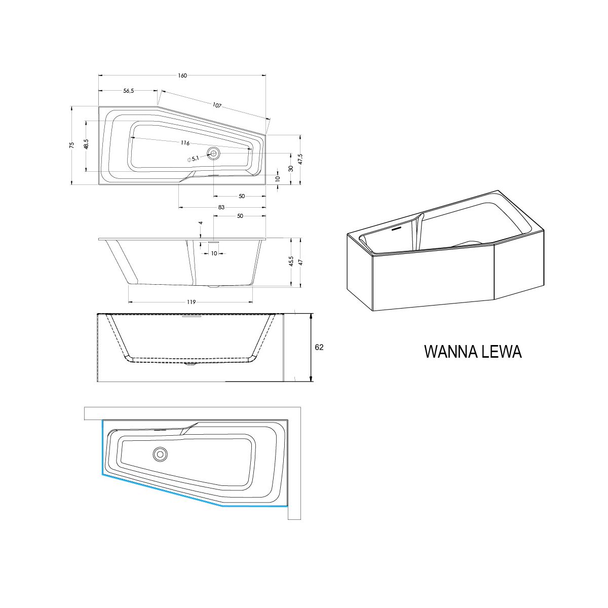 Die Plug&Play-Badewannenkollektion umfasst Badewannen, bei denen die lange und kurze Seite oder die Vorderseite (Eckmodelle) mit Frontverkleidungen aus dem gleichen Acrylmaterial wie die Badewanne ausgestattet sind. Sie bilden zusammen eine Einheit ohne sichtbare Verbindungsstellen. Diese Lösung ermöglicht eine viel schnellere Installation im Vergleich zu herkömmlichen Fliesenverkleidungen und garantiert eine ästhetische Einheitlichkeit. Die Höhe der Plug&Play-Badewanne beträgt 62 cm.